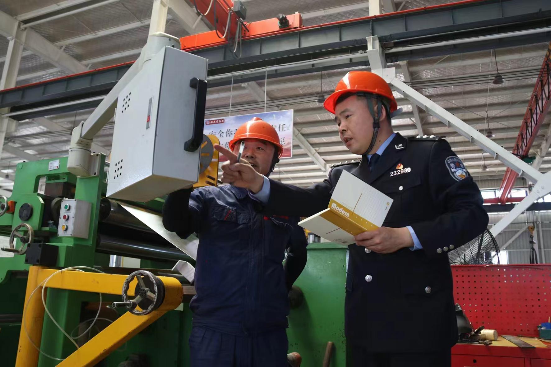 图为民警走进企业了解情况,开展预防经济犯罪知识宣传。