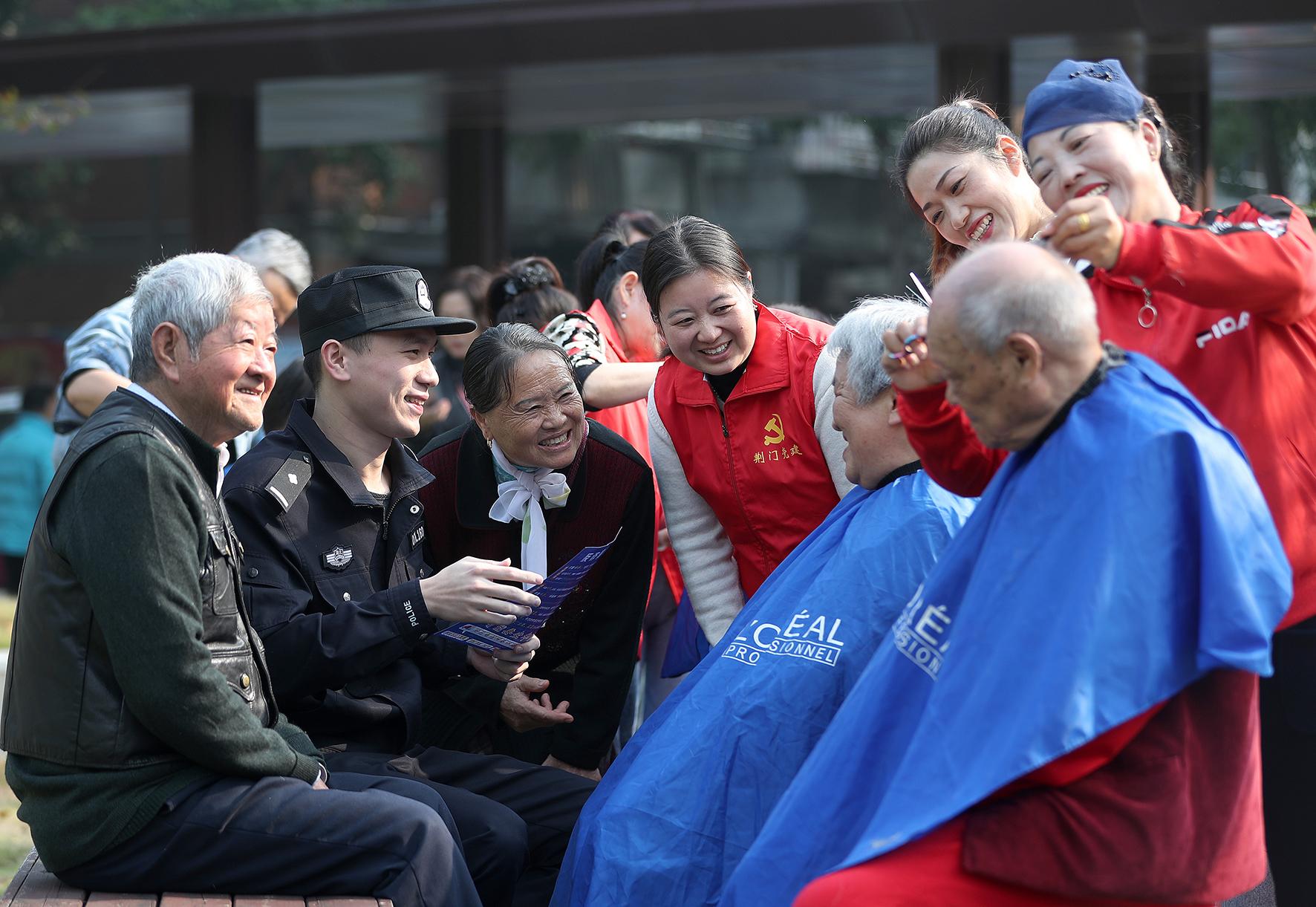 10月30日,湖北省荆门市公安局高新区·掇刀区分局白庙派出所民警和社区“反诈宣传”志愿者在长源热电社区,向老年人开展“养老反诈”普法宣传。