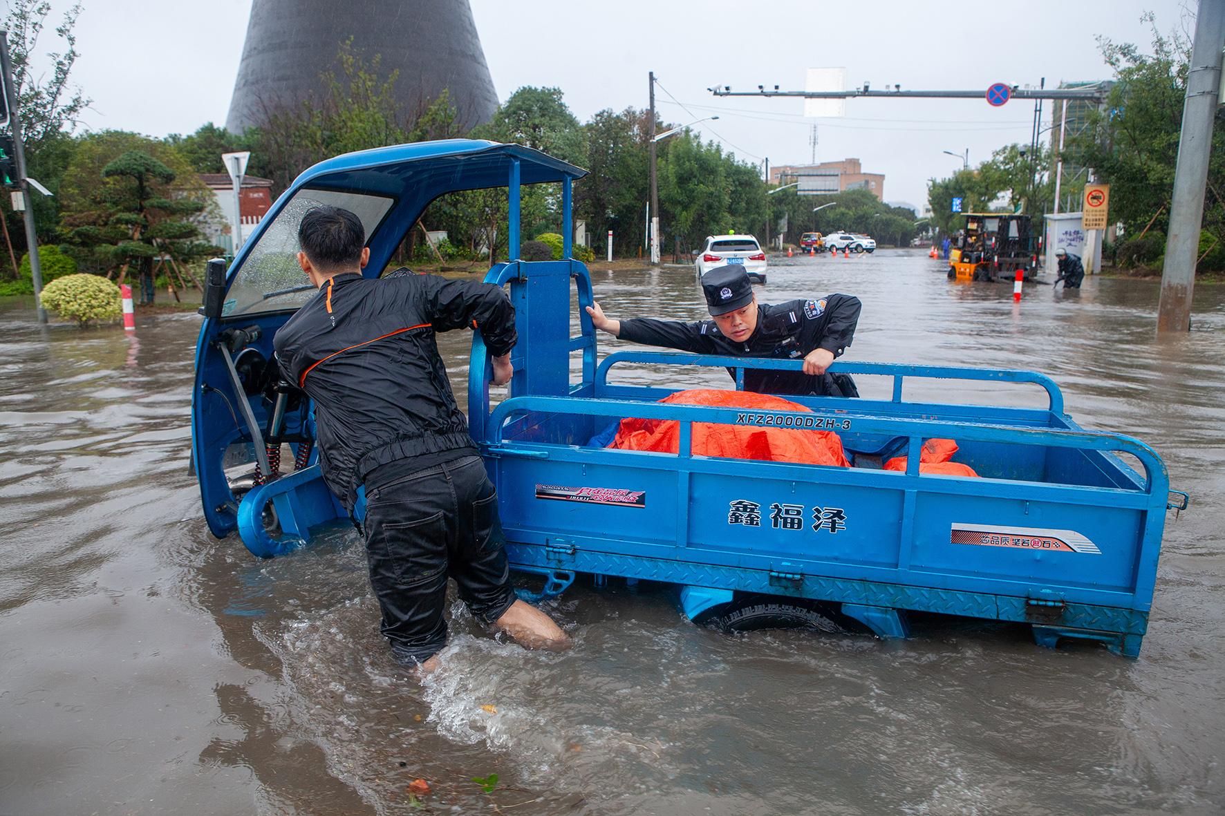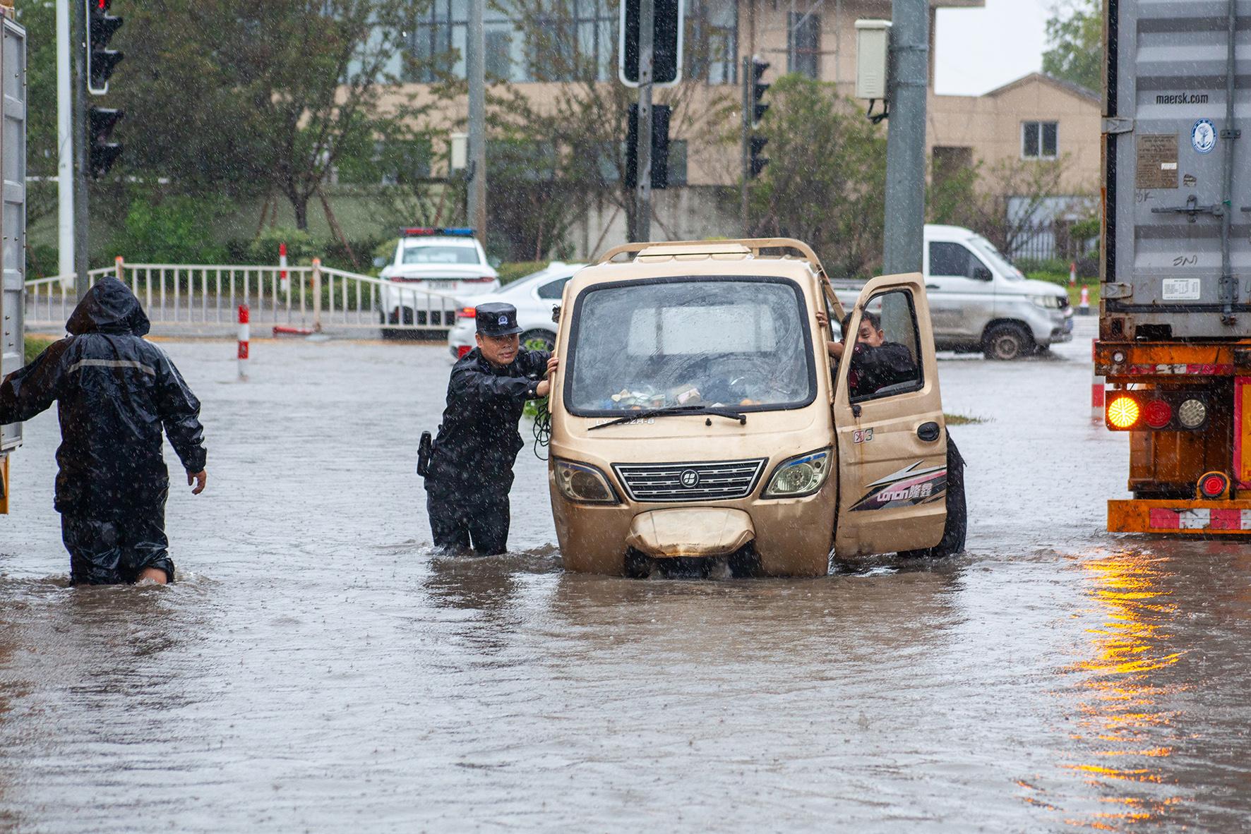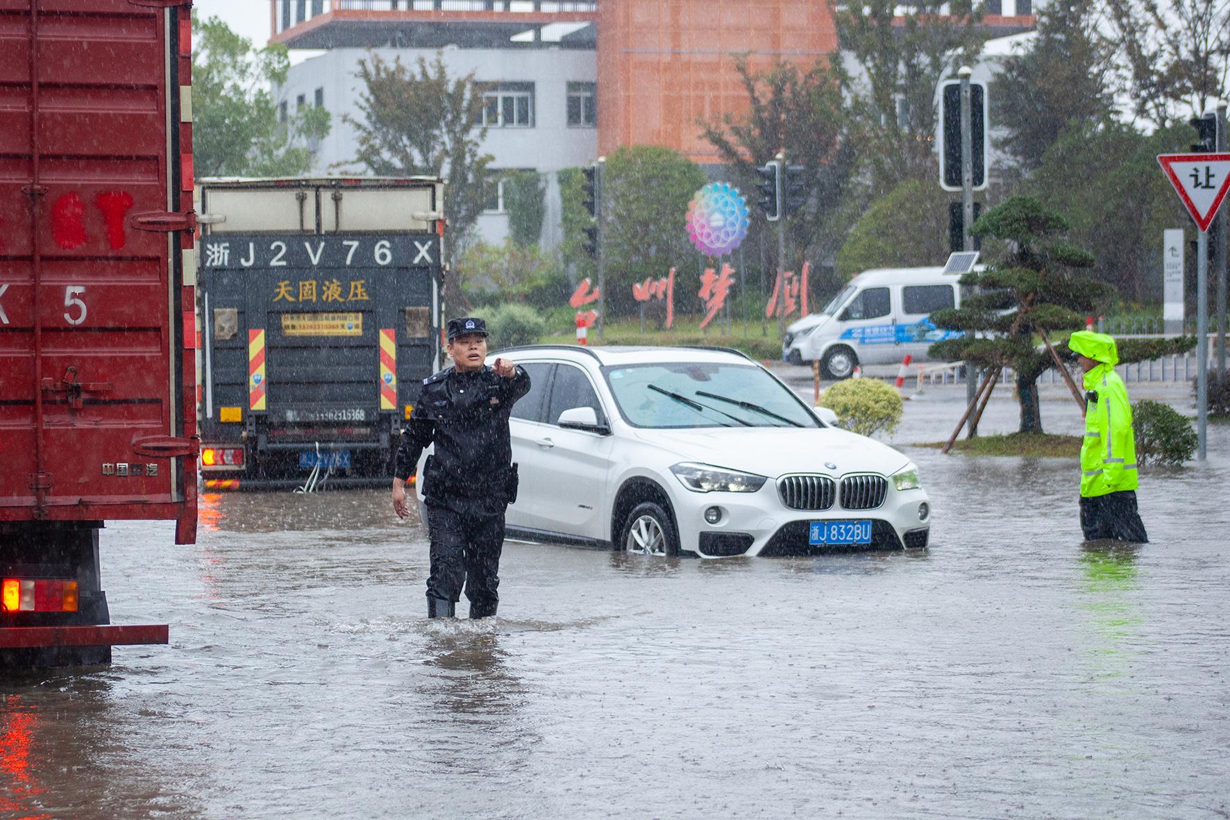 11月1日,台风“康妮”带来的暴雨使浙江省台州市黄岩区部分路段积水严重。台州市公安局黄岩分局全力应对,做好救援车辆、转移群众工作。