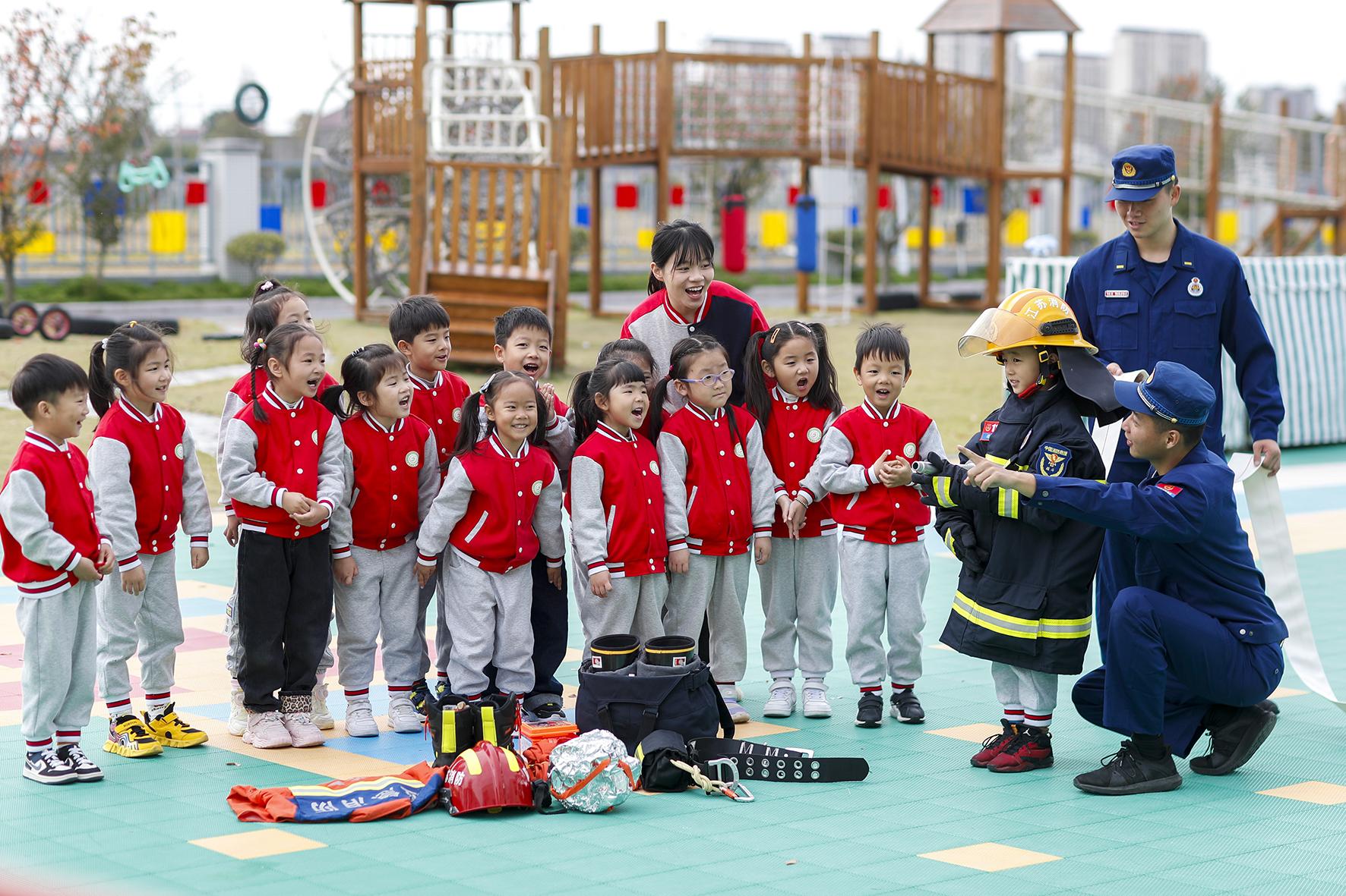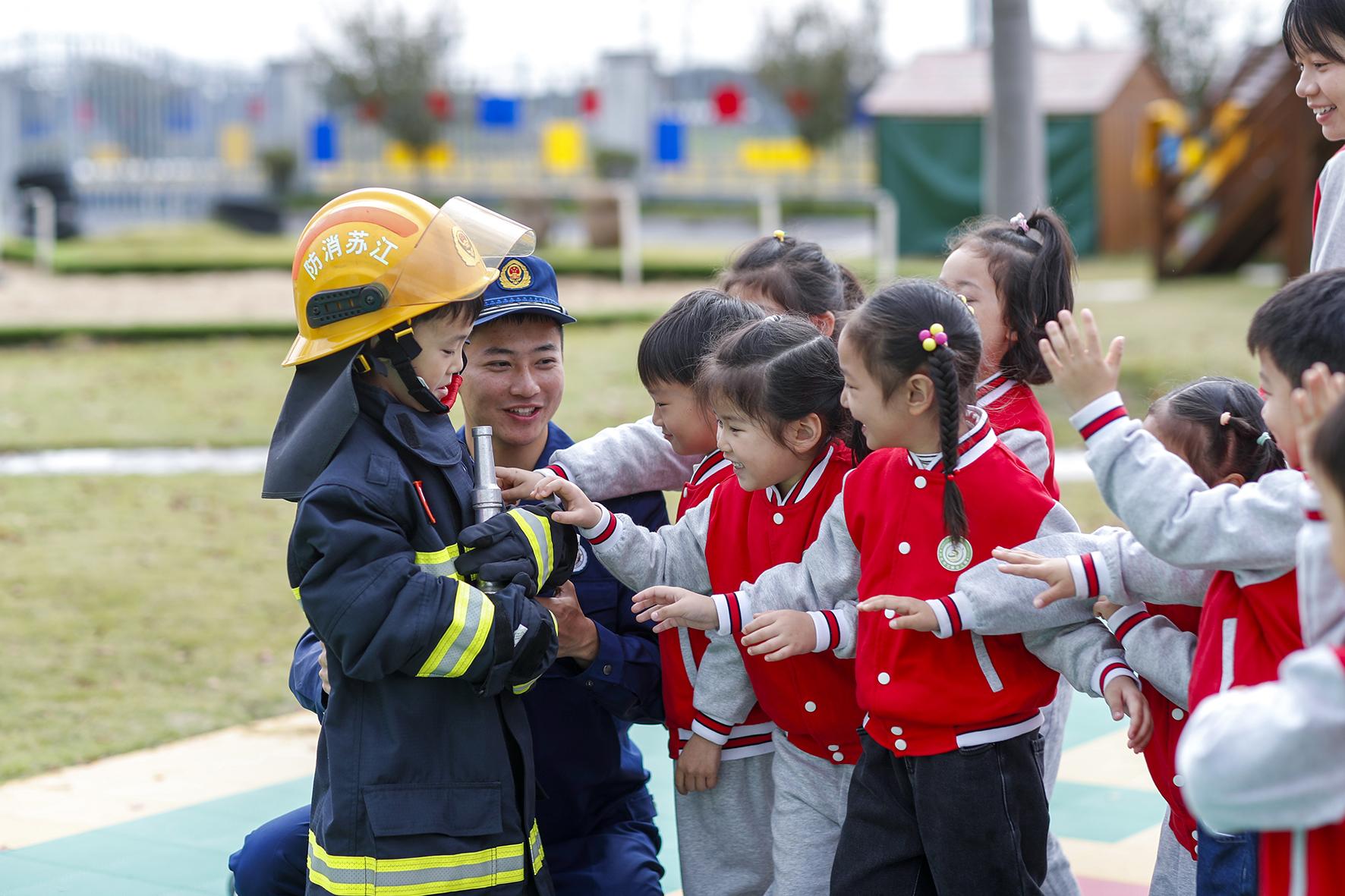 11月8日,江苏省兴化市消防救援大队联合文峰幼儿园开展“萌娃学消防 安全伴成长”主题活动。
