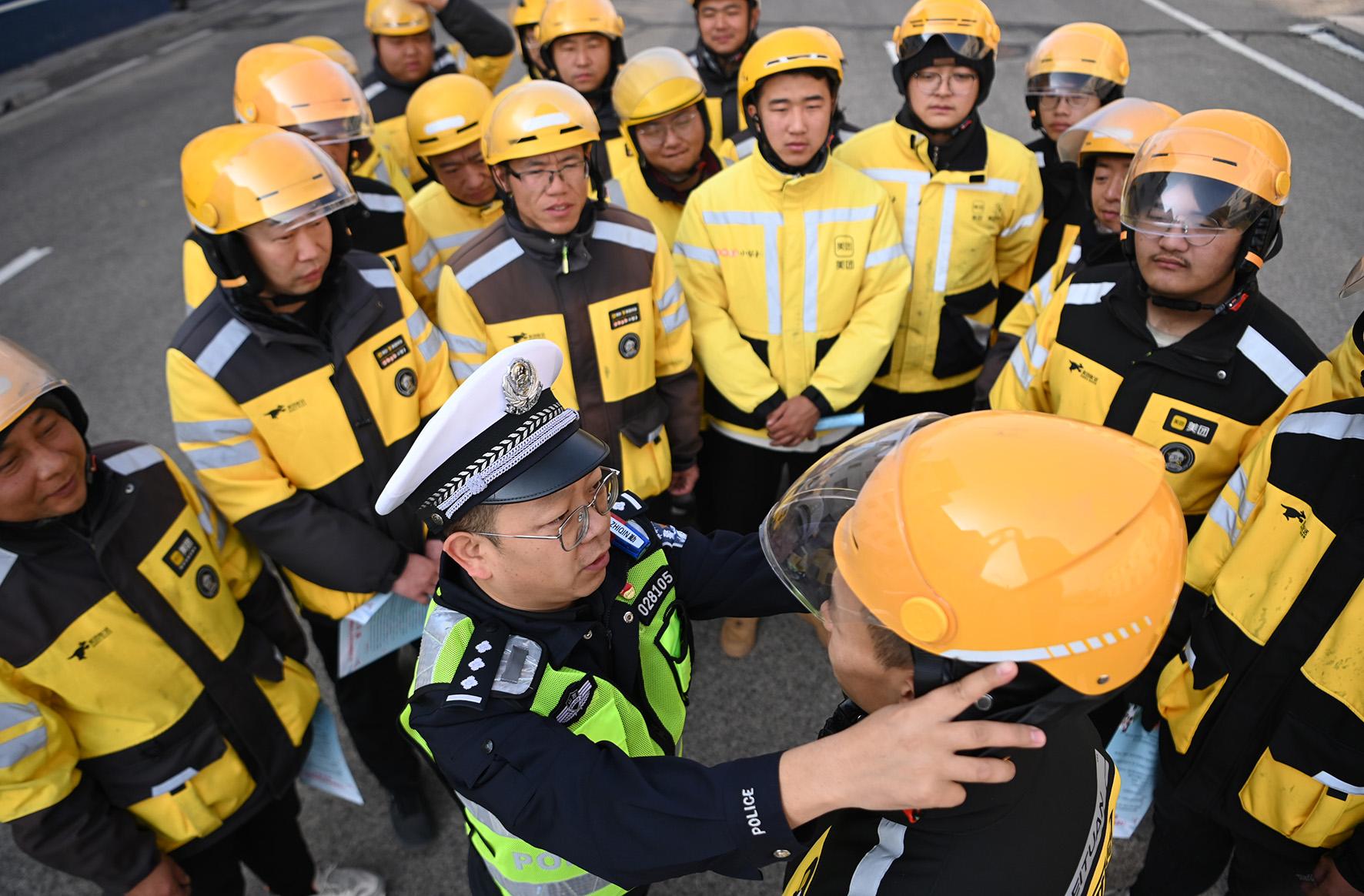 11月8日,山西省大同市广灵县公安局交通警察大队民警对从事外卖送餐的驾驶人进行交通安全知识培训。