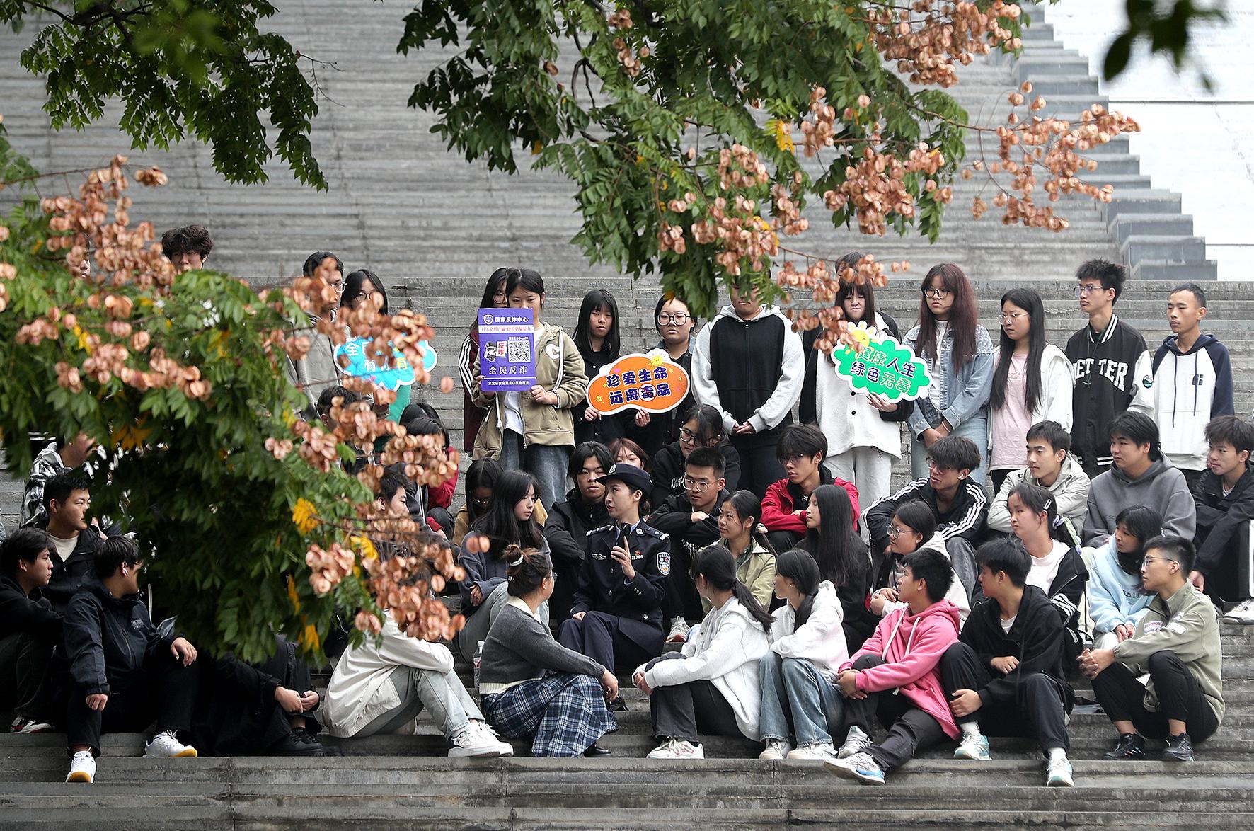 11月14日,湖北省荆门市公安局东宝分局泉口派出所民警在荆楚理工学院,向大学生开展“禁毒+反诈”主题宣传。