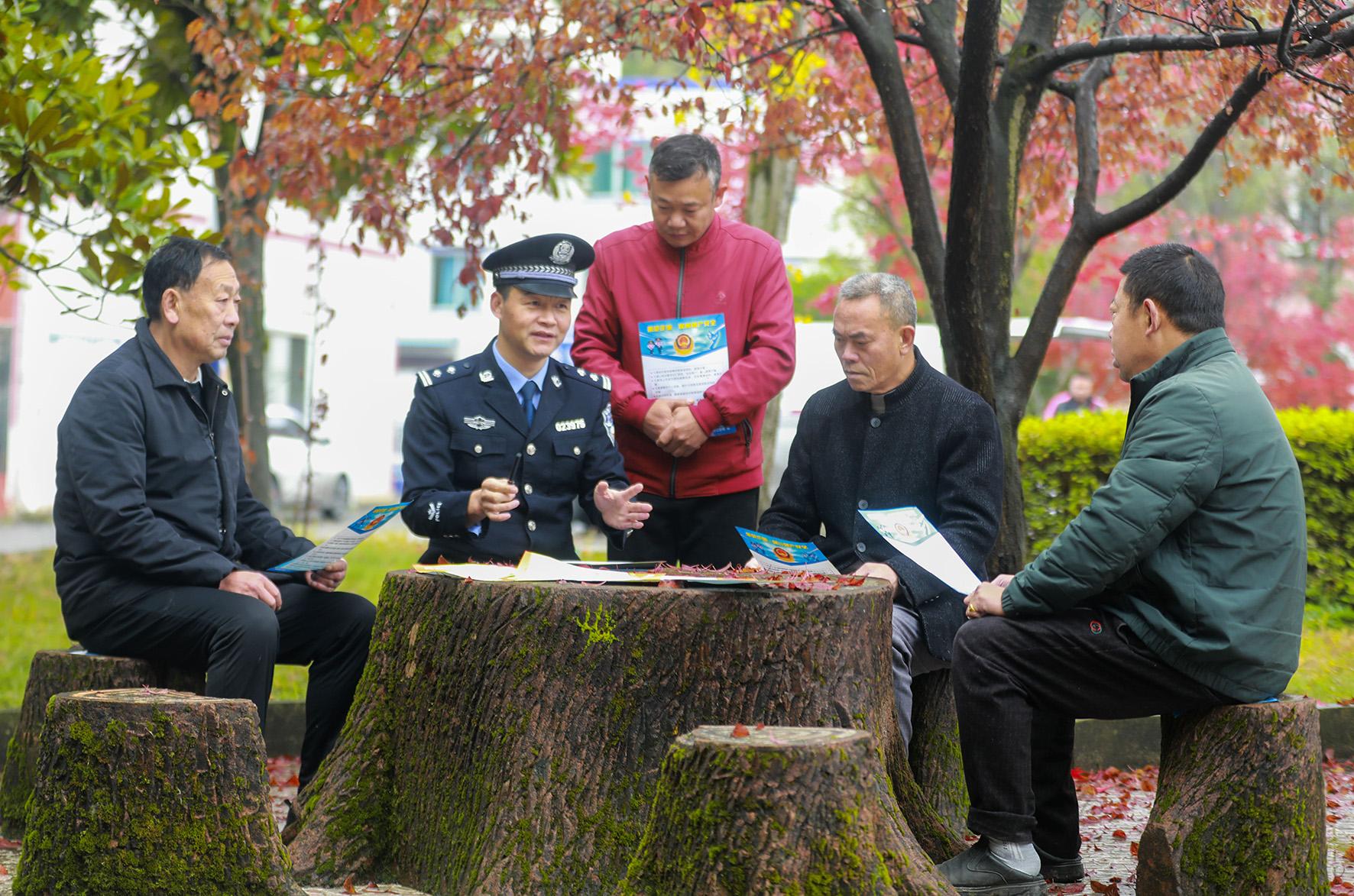 12月6日,贵州省黔西市公安局谷里派出所民警走进辖区香山社区农家小院,给社区居民宣传交通安全、反诈知识,提高社区居民的安全防范意识。