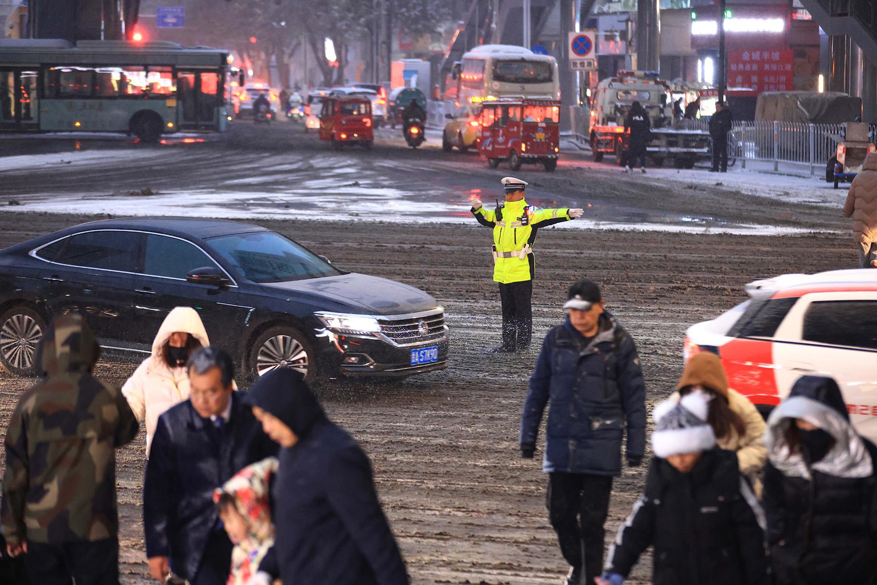 12月10日,甘肃省兰州市迎来新一轮大范围降雪天气。兰州市公安局交警支队迅速启动恶劣天气应急预案,积极开展车辆疏导、融雪除冰、服务群众、宣传警示等各项工作,全力确保广大群众出行平安。