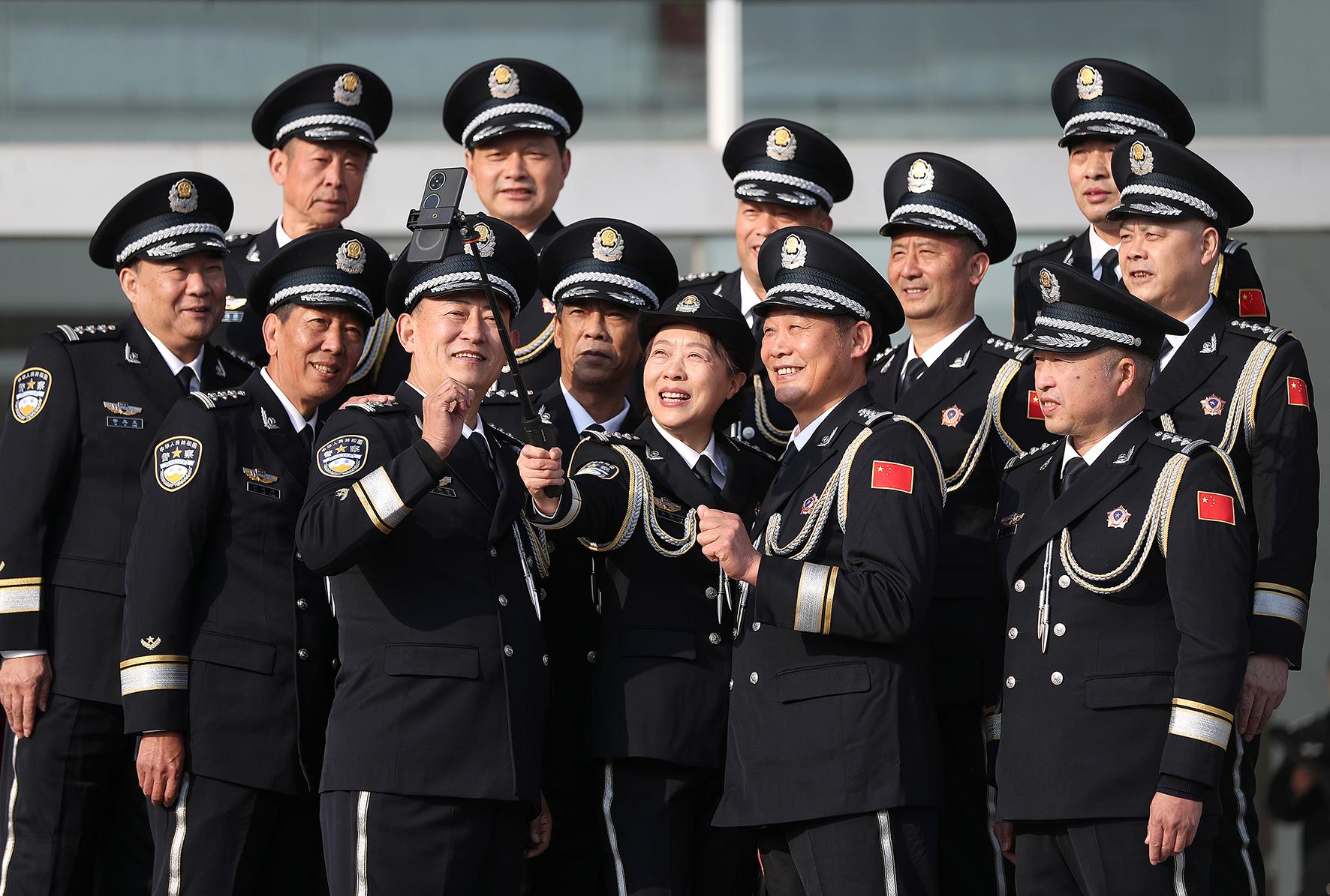 12月11日,湖北省钟祥市公安局一批退休民警在公安局大院合影留念,将美好温情的瞬间定格。
