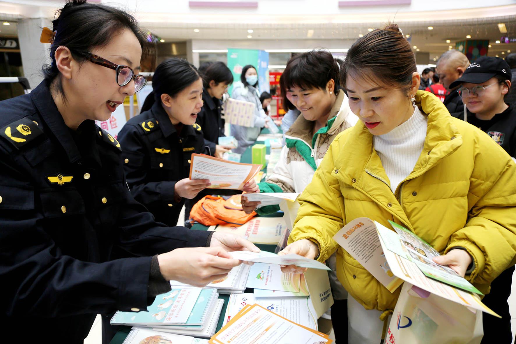 12月12日,江苏省连云港市连云区市场监督管理局执法人员向市民宣传食品安全知识。当日,连云港市连云区市场监督管理局联合公安局、卫健委等部门开展“诚信尚俭 共享食安”食品安全宣传周活动。
