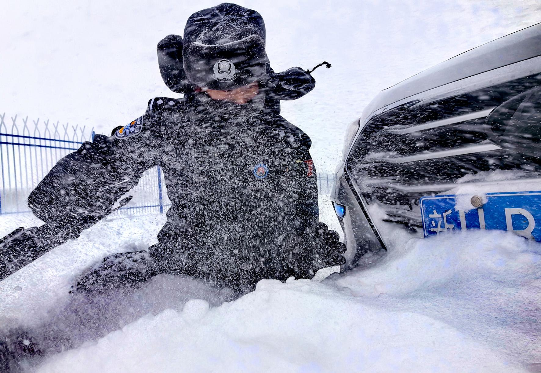 12月16日,新疆阿勒泰边境管理支队吉木乃口岸边境派出所接到群众求助称,因风吹雪较大自己驾驶的车辆走错路线,被困积雪中。接到求助后,巡逻警力第一时间赶赴现场,通过清挖积雪和警车牵引的方式,成功将被困车辆救出。