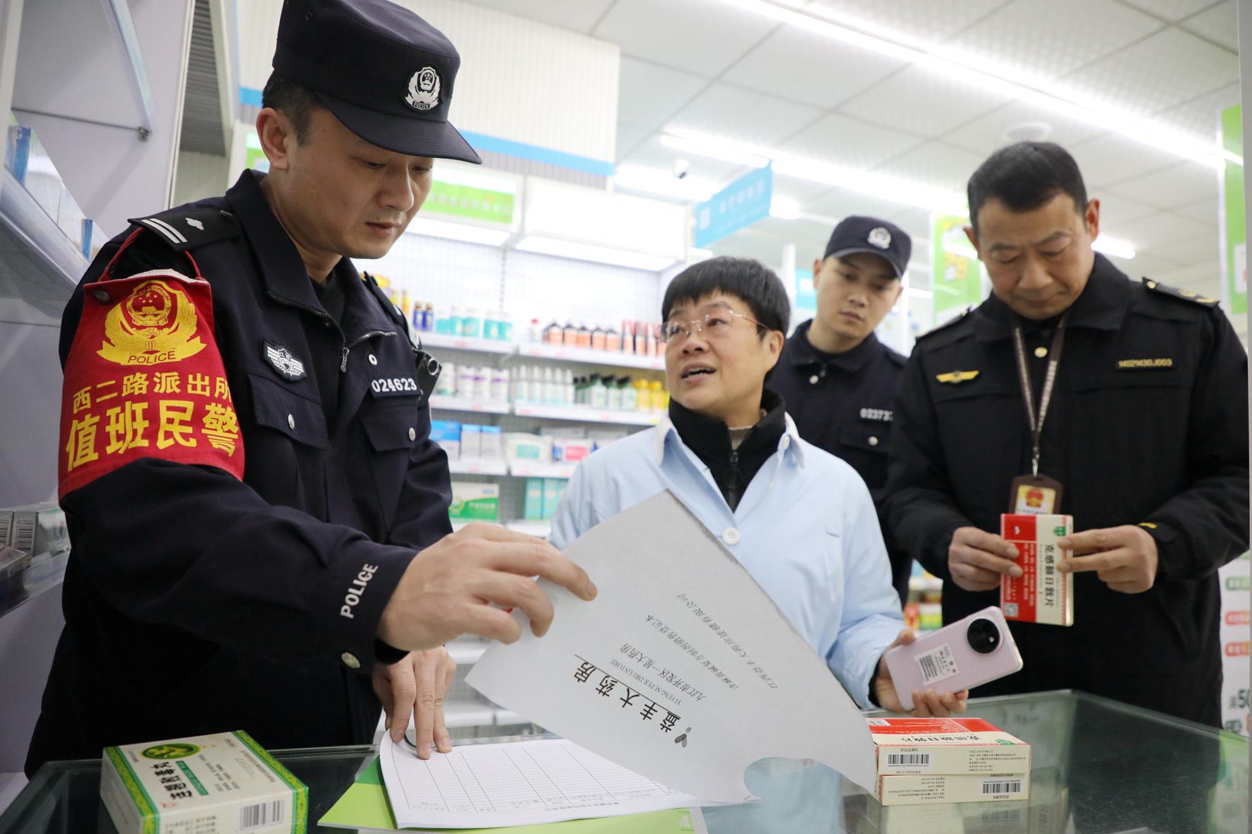12月24日,江西省九江市公安局八里湖分局西二路派出所民警联合市场监督部门工作人员,深入辖区药店对麻醉药品和精神药品的销售情况等进行检查,严防流入非法渠道。