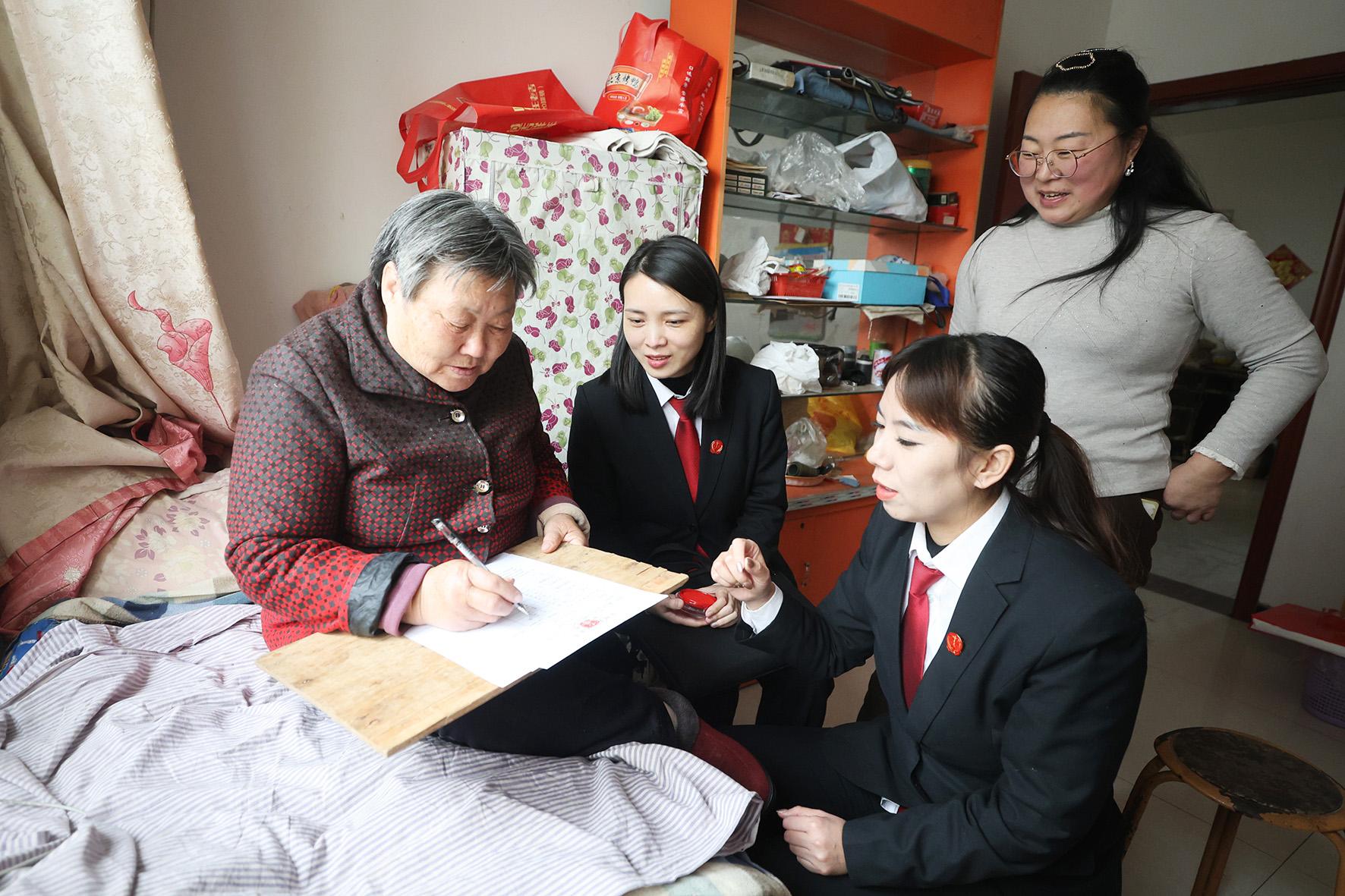 12月25日下午,河南省安阳县人民法院干警冒着严寒来到高庄镇,上门为因交通事故受伤的魏老太办理立案和委托手续。