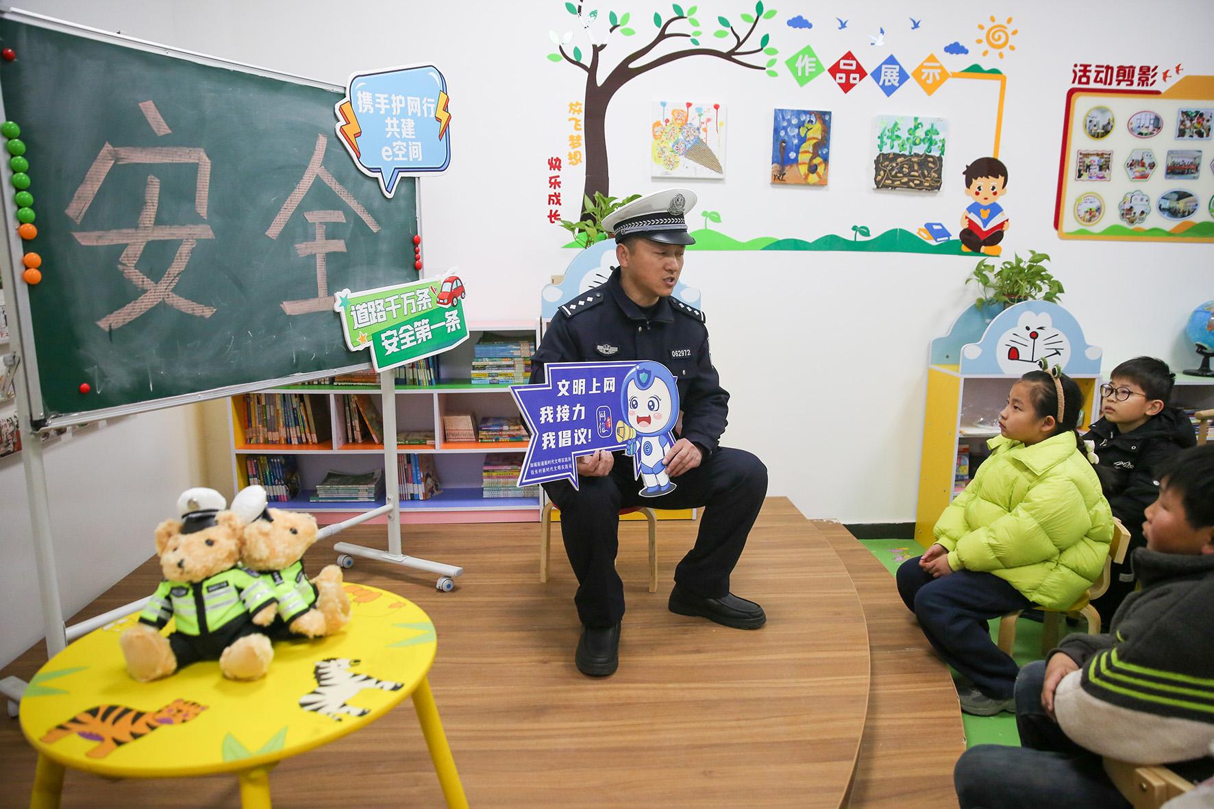 1月20日,江苏省如皋市如城街道联合如城交警中队走进钱长村农家书屋开展寒假安全教育课堂,向孩子们普及交通安全知识。