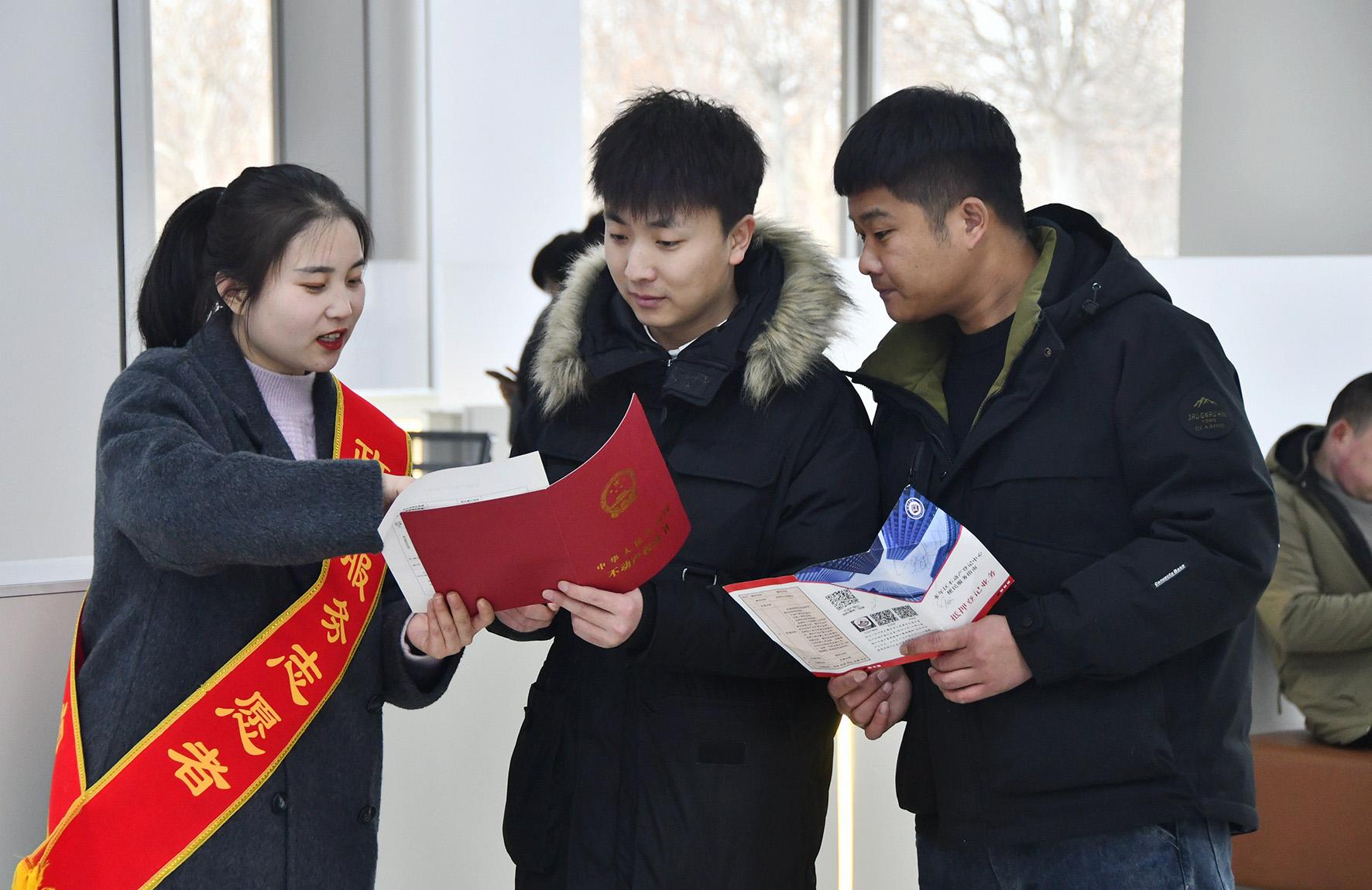 图为2月6日,党员志愿者正在帮助居民办理不动产登记业务。