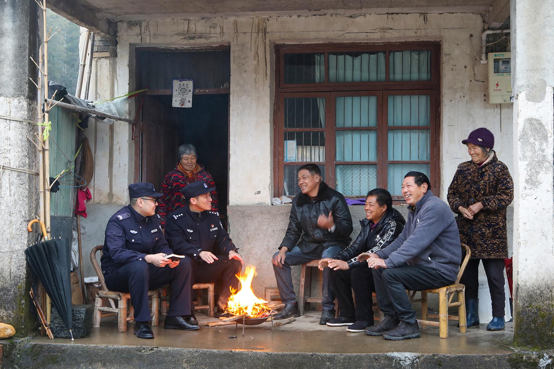 2月20日,浙江省台州市公安局黄岩分局宁溪派出所民警来到位于山区的上桧村走村入户,开展矛盾纠纷化解、安全防范宣传。