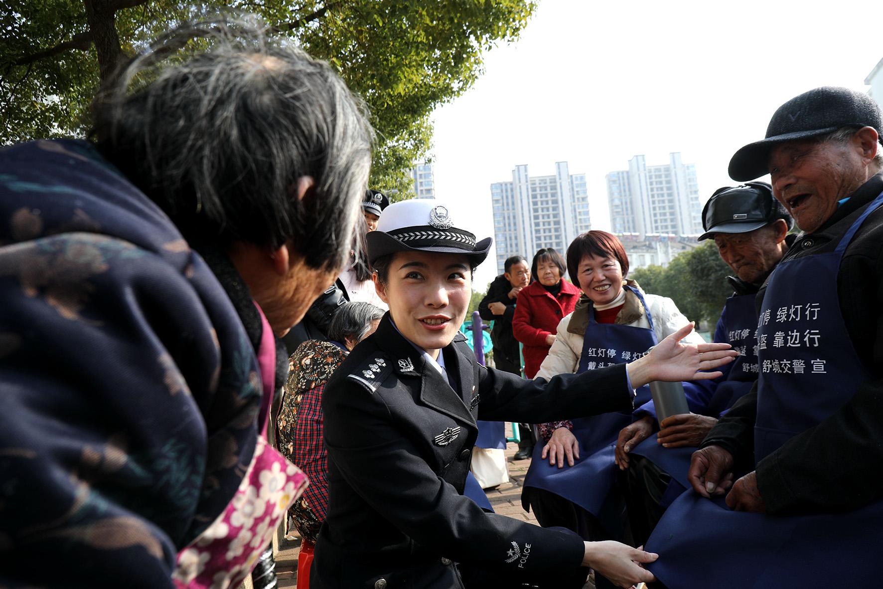 2月26日,安徽省舒城县公安局交管大队联合经济技术开发区派出所走进北隅小区开展交通安全宣传活动。