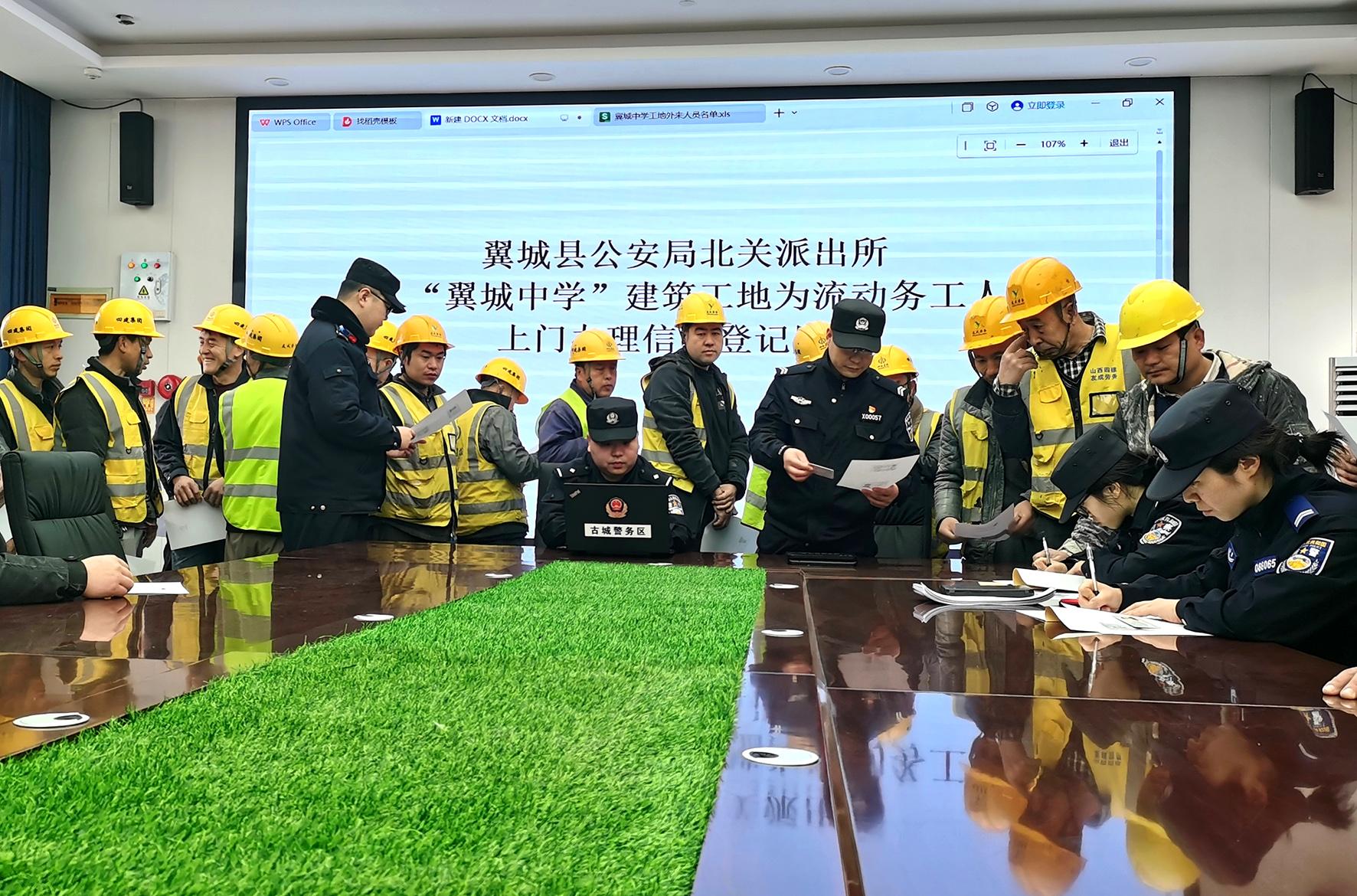 3月6日,山西省翼城县公安局北关派出所组织民辅警深入辖区翼城中学建筑工地开展流动人口信息登记、指导工地安全管理工作。