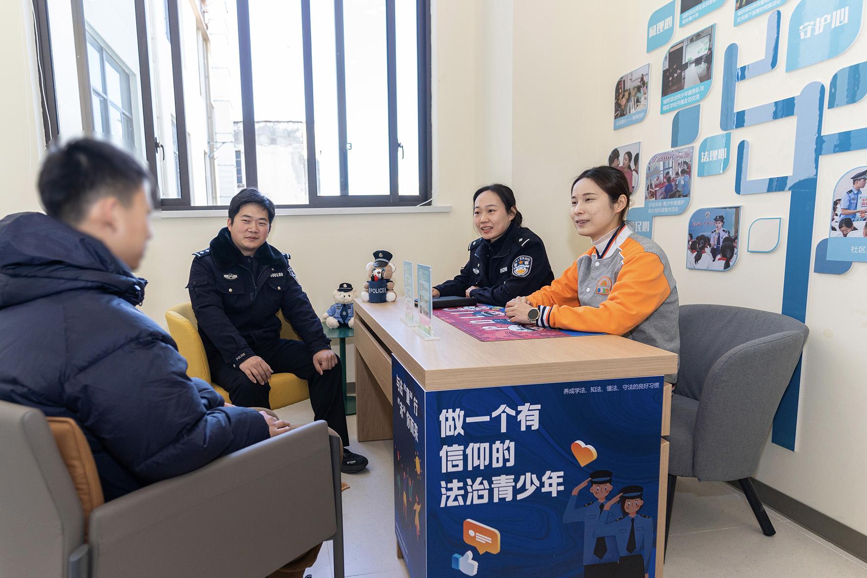 图为3月9日,民警联合青少年社工在社区少年服务队工作室为未成年人提供心理辅导。