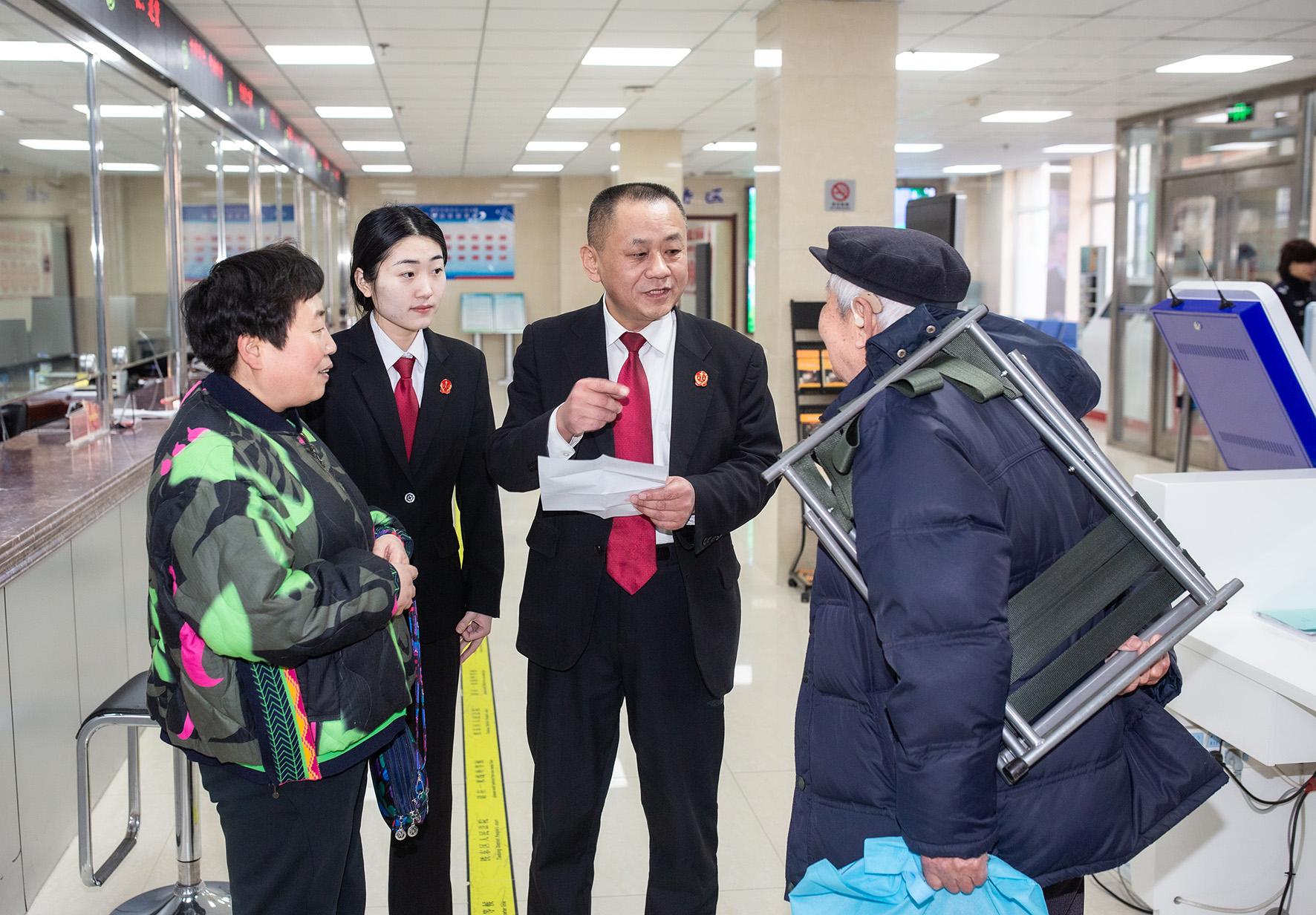 图为3月17日,立案庭工作人员接待来访群众,解答问题。