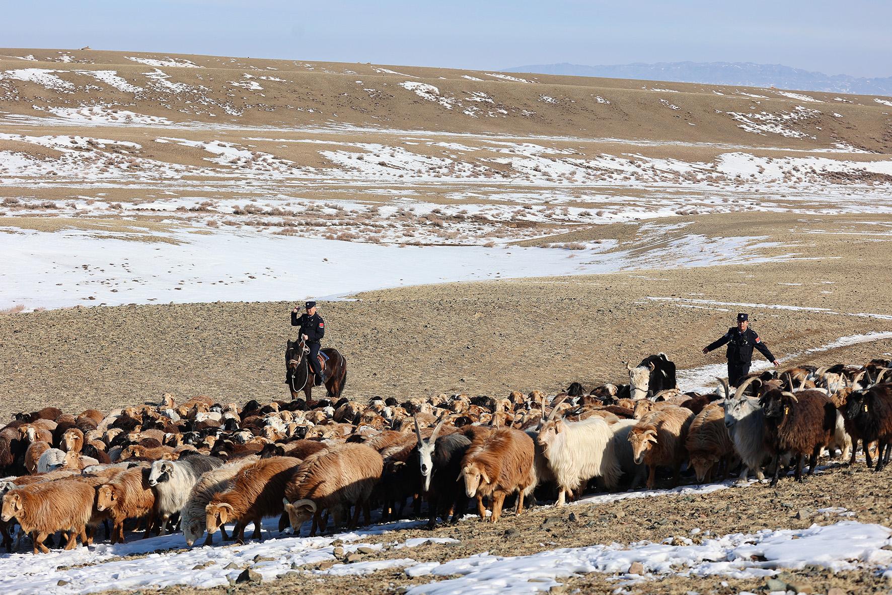 图为3月18日,民警帮助牧民进行转场。