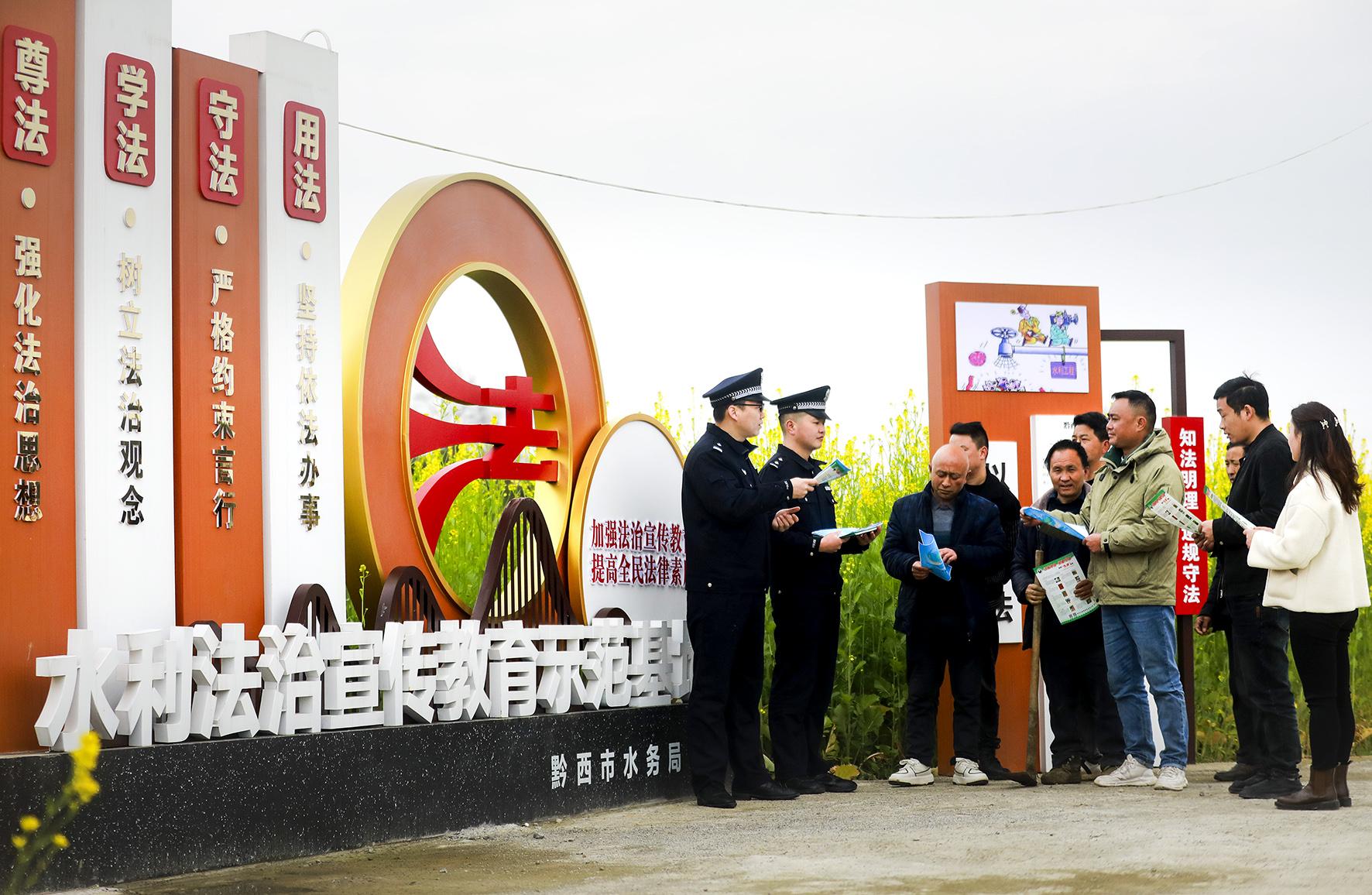 3月20日,贵州省黔西市公安局在辖区金碧镇高标准农田里,开展“法治宣传进田间”迎接世界水日活动。