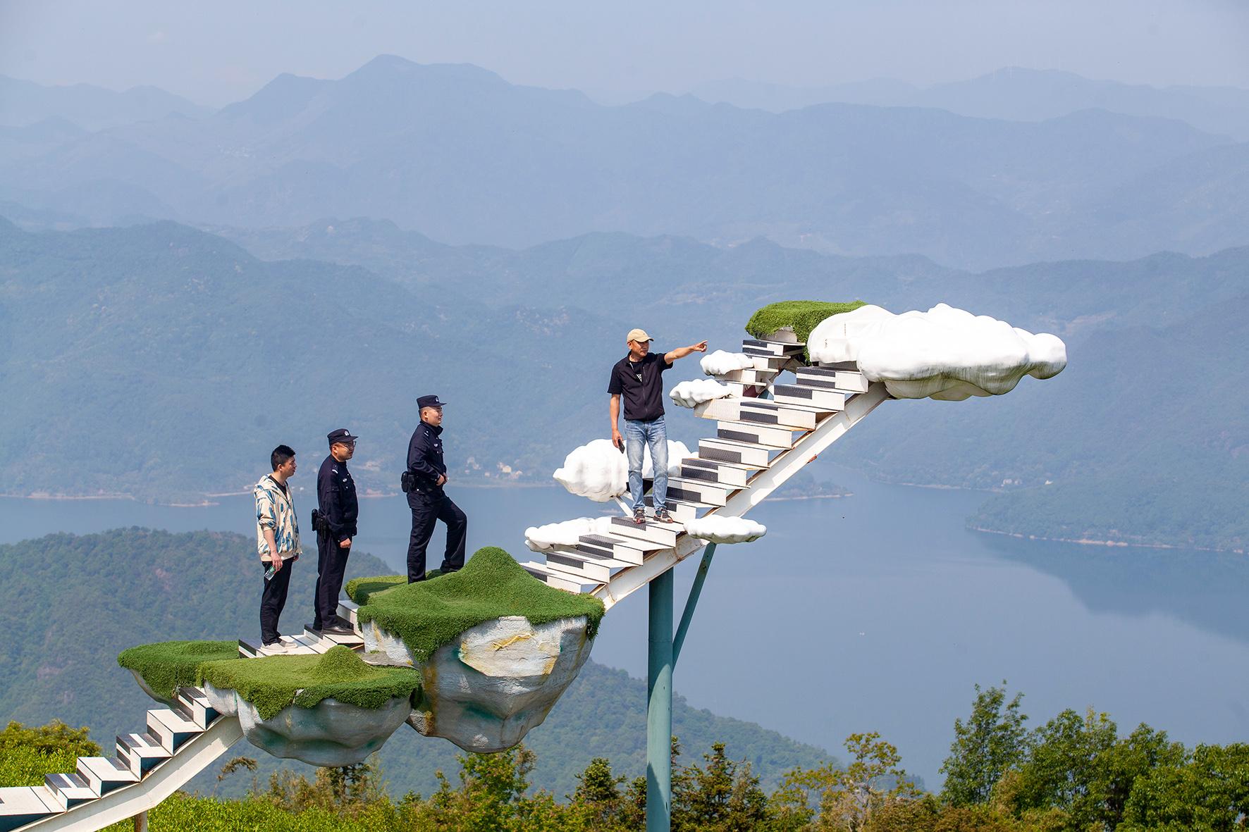 图为4月29日,北洋派出所民警在天空之城景区开展安全检查。