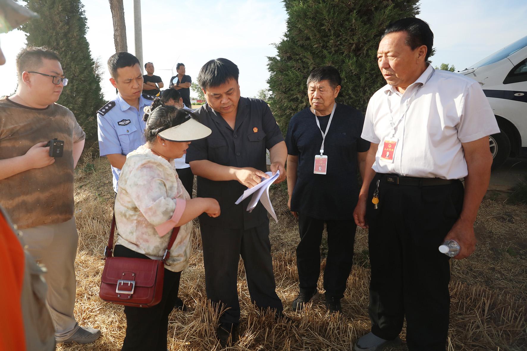 6月3日,河南省安阳县人民法院执行局法官一行来到辖区北郭乡,对一起亲兄弟之间土地承包经营权纠纷案进行强制执行。在安阳市、县两级人大代表现场监督见证下,对涉案土地划定了新的界线,最终案件得到解决。
