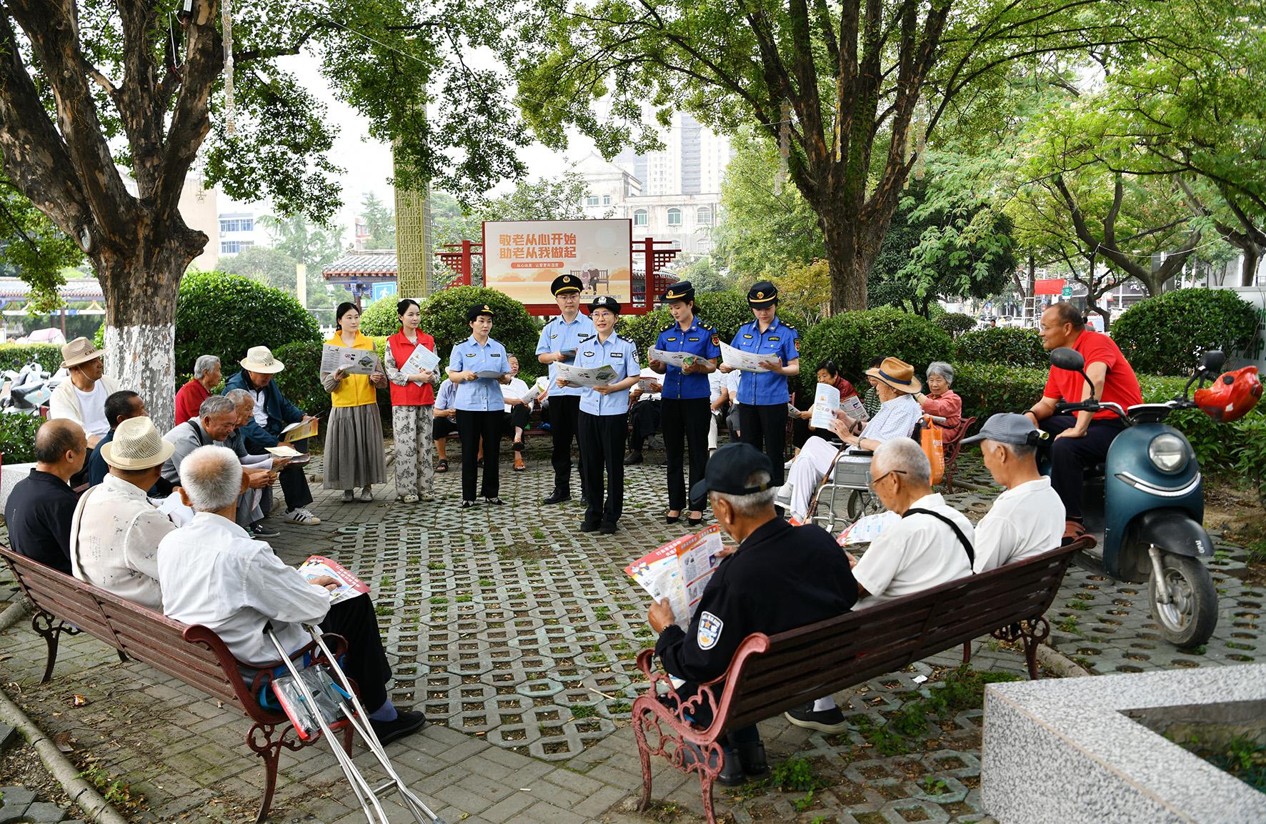 6月12日,安徽省阜南县公安局经侦民警联合市场监督管理执法人员、城市管理执法人员在街心公园向群众开展“守护钱袋子 护好幸福家”宣传活动。