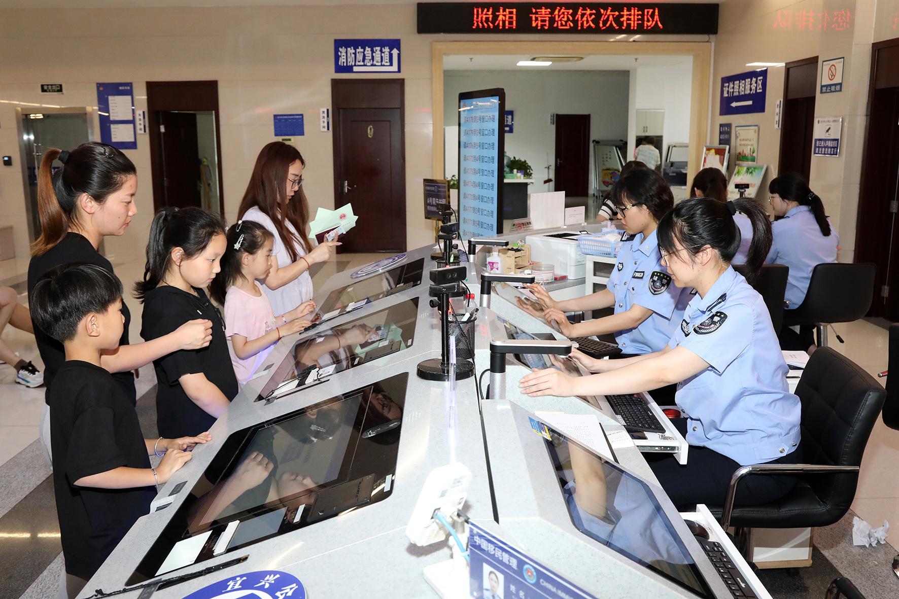6月13日晚,江苏省宜兴市公安局开展“学生出入境办证夜间专场”服务活动,进一步优化出入境便民服务。