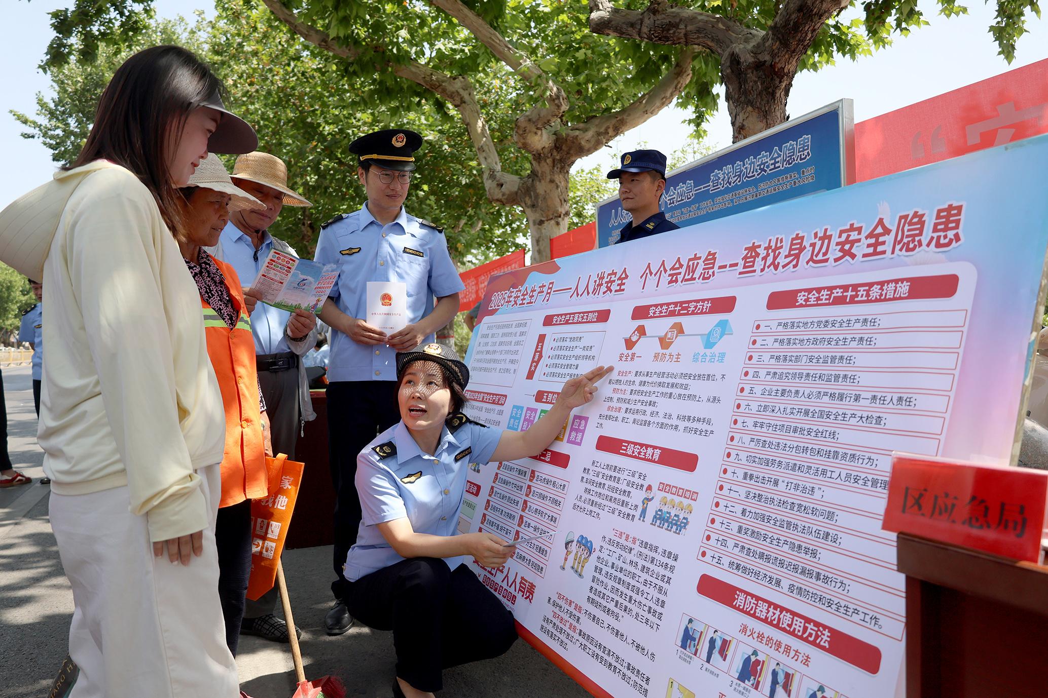 6月16日,山东省枣庄市台儿庄区应急管理局联合台儿庄区消防救援大队、台儿庄区市场监督管理局等12家单位走上街头,通过设立宣传咨询点、悬挂宣传条幅,发放宣传资料等形式,开展“安全宣传咨询日”集中宣传活动。