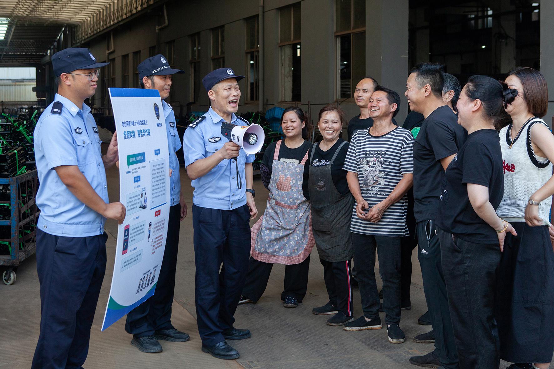 6月19日,浙江省台州市公安局黄岩分局城南派出所民警来到辖区工厂,运用生动有趣的“反诈打油诗”给工人们宣讲防范电信网络诈骗知识。