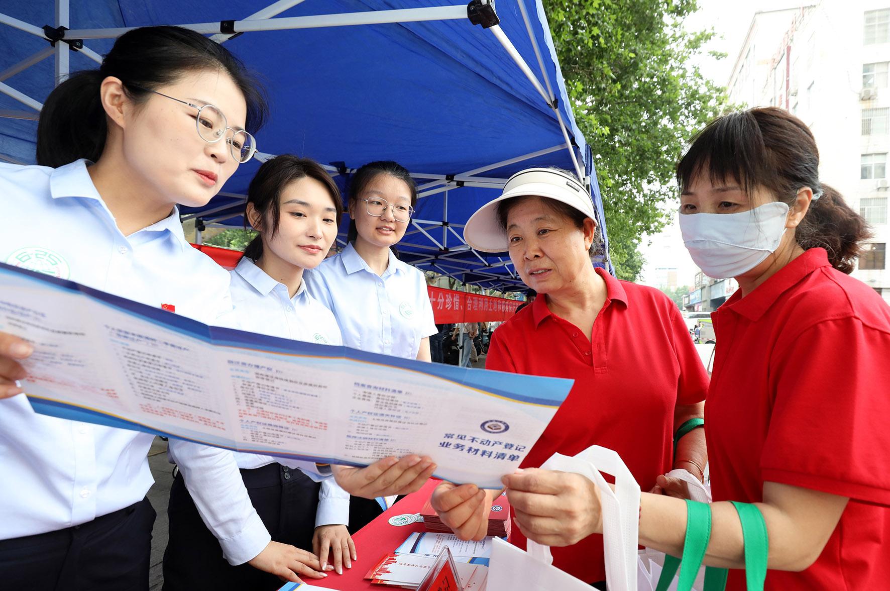 6月25日,是第35个全国土地日。安徽省淮北市自然资源和规划部门围绕“节约集约用地 严守耕地红线”主题,设立咨询台、摆放宣传展板、发放宣传品并解答群众咨询。