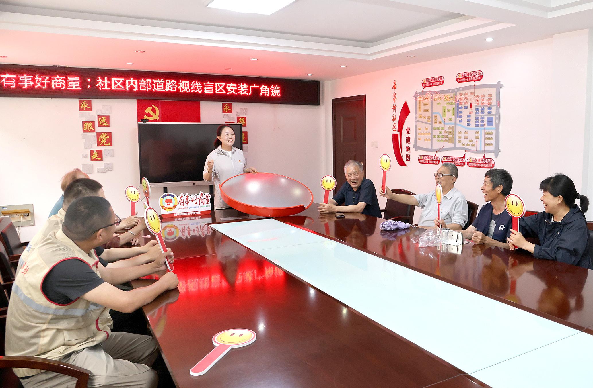 6月23日,江苏省南通市崇川区新城桥街道易家桥社区“有事好商量”议事室就“社区内部道路视线盲区安装广角镜”开展协商议事。最终在各方努力下广角镜安装到位,消除了行驶车辆的视线盲区和安全隐患。