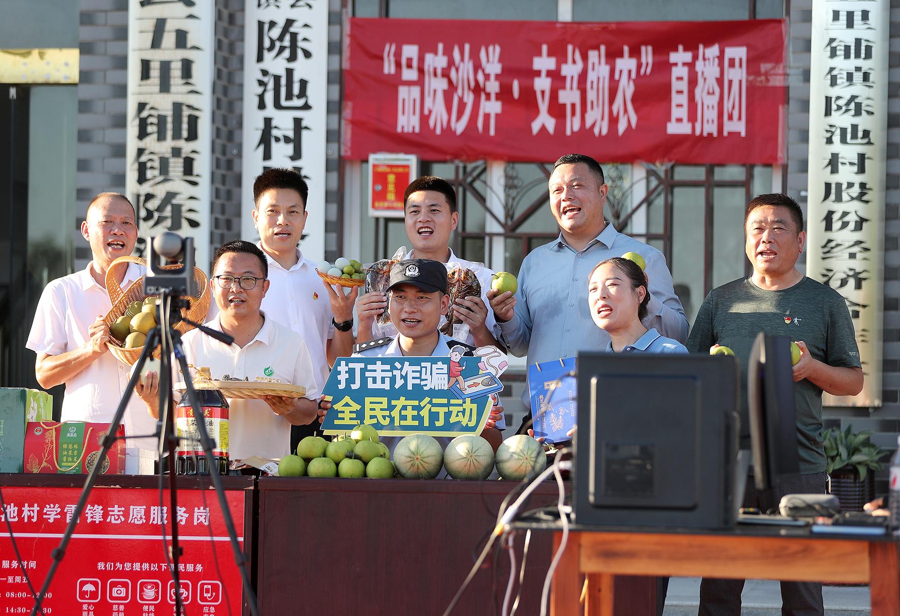 7月3日傍晚,在湖北省沙洋县五里铺镇陈池村,沙洋县公安局五里派出所民警和7位村支书,通过网络直播的形式向千家万户开展反诈禁毒宣传。