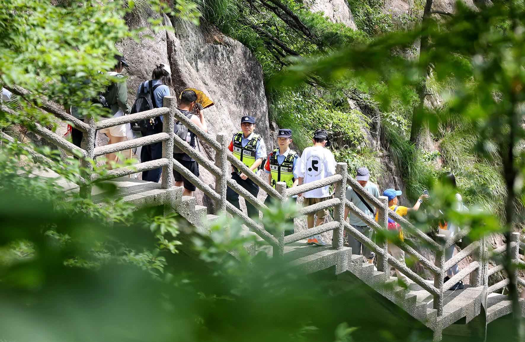 随着夏季旅游高峰期的到来,安徽省黄山风景区公安局积极采取“警务+服务”,用“温度”守护旅游“热度”的勤务模式,推动警力前置,多措并举全面筑牢夏季护游安全防线。
