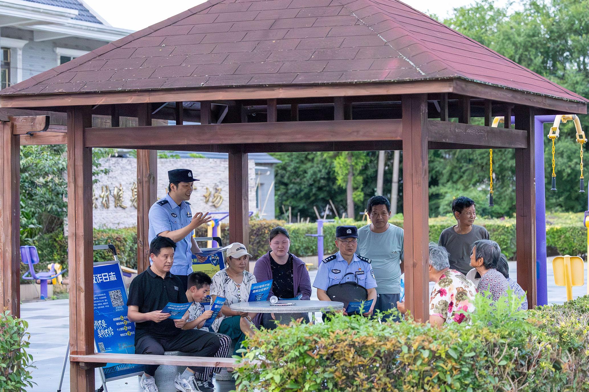图为民警以案说法,向村民讲解反诈知识。