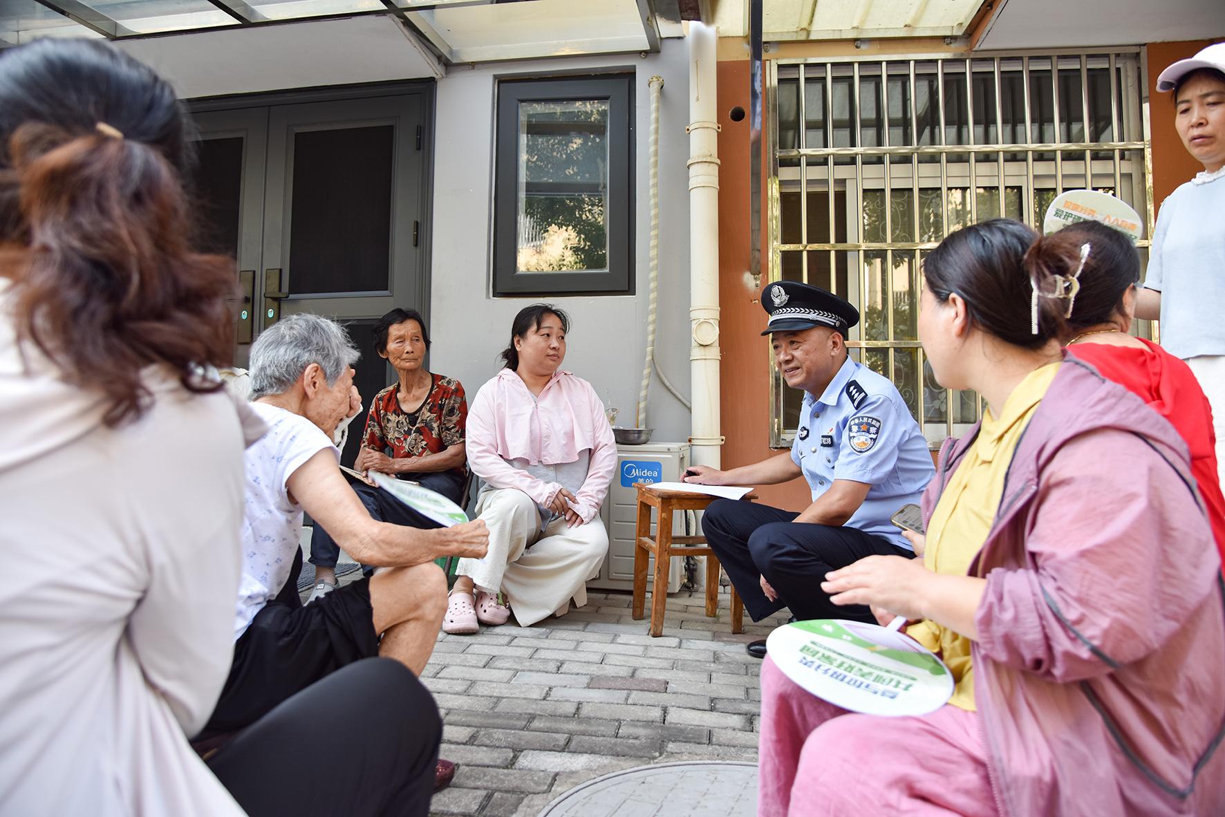 7月4日,安徽省马鞍山市含山县公安局环峰派出所民警在辖区进行入户走访,倾听群众诉求,宣讲防骗知识。