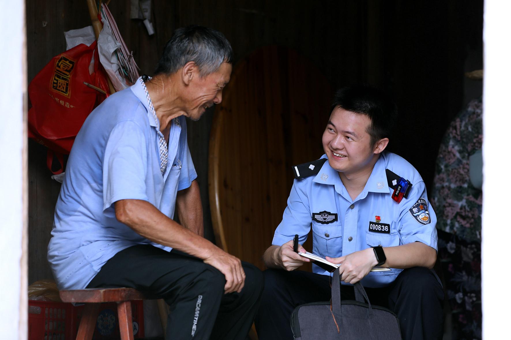 7月8日,安徽省宁国市公安局甲路派出所枫山村联系民警会同村委会工作人员在高温下走访高龄老人,深入推行派出所“预防警务”,确保老人们安全度夏。