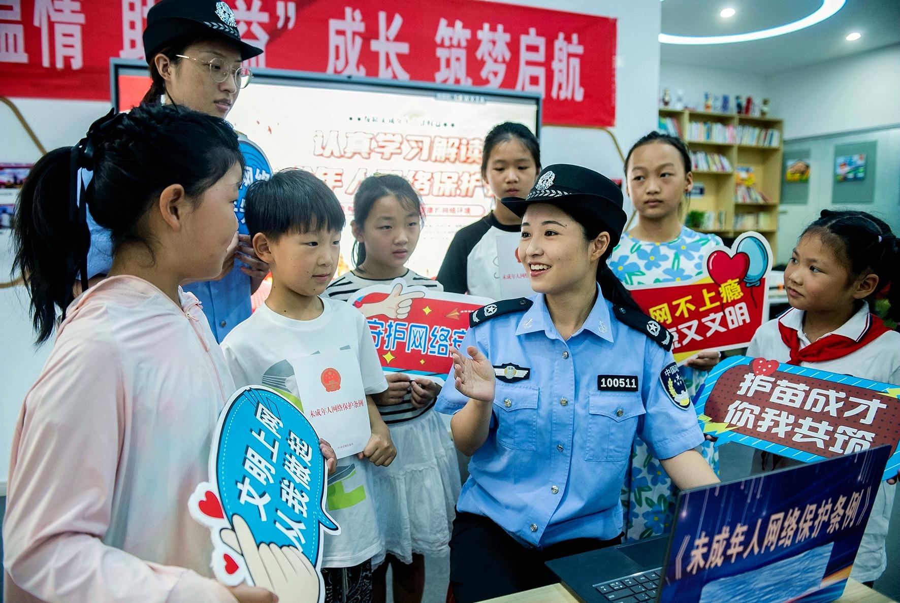 7月8日,安徽省含山县司法局组织司法干警走进“爱心课堂”,开展《未成年人网络保护条例》宣传活动。