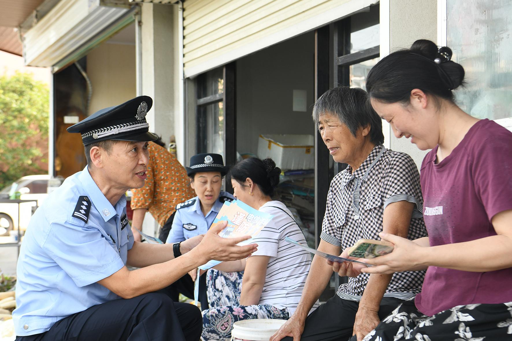 7月15日,安徽省马鞍山市含山县公安局环峰派出所组织民警走进农贸市场宣传防范电信网络诈骗知识。