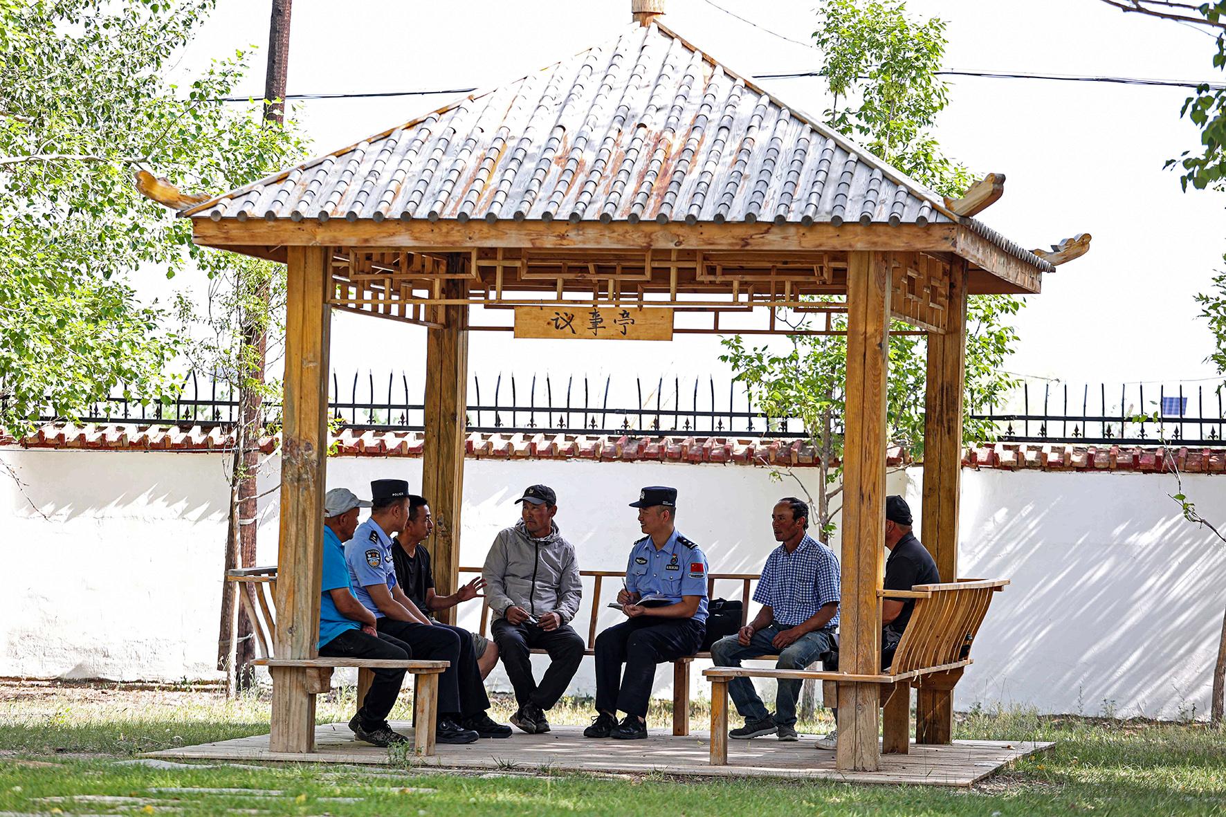 7月17日,新疆阿勒泰边境管理支队喀尔交边境派出所民警走进辖区开展入户走访工作,认真听取群众对派出所的意见和建议,现场为群众答疑解惑。