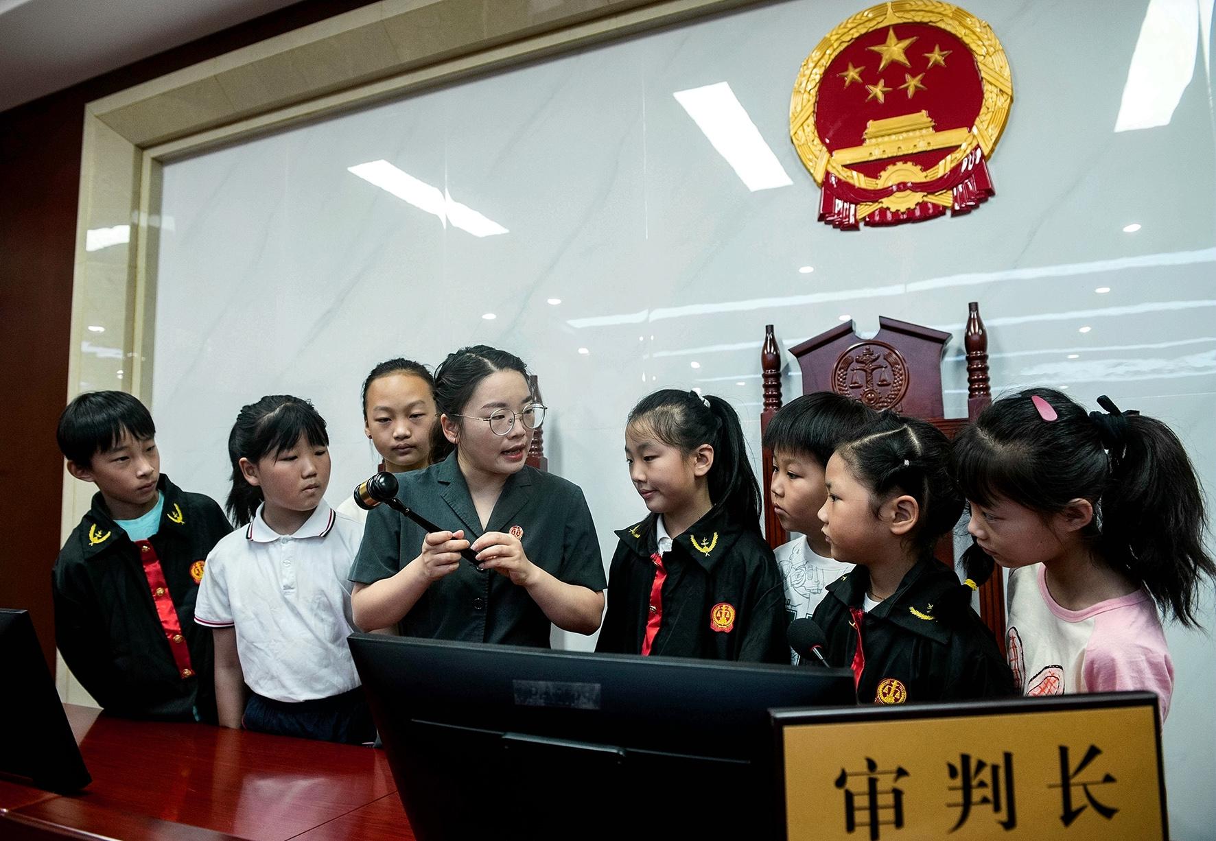 7月22日,安徽省含山县司法局、含山县青年志愿者协会组织“爱心课堂”的孩子们走进含山县人民法院,开展模拟法庭活动。