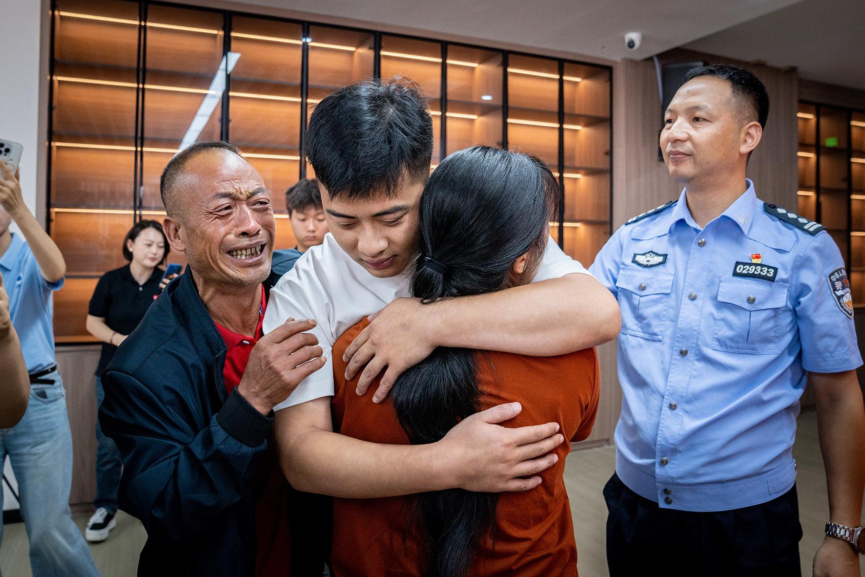 7月22日,在四川绵阳市公安局举行的团圆活动上,有两个家庭与各自失散多年的孩子团圆。