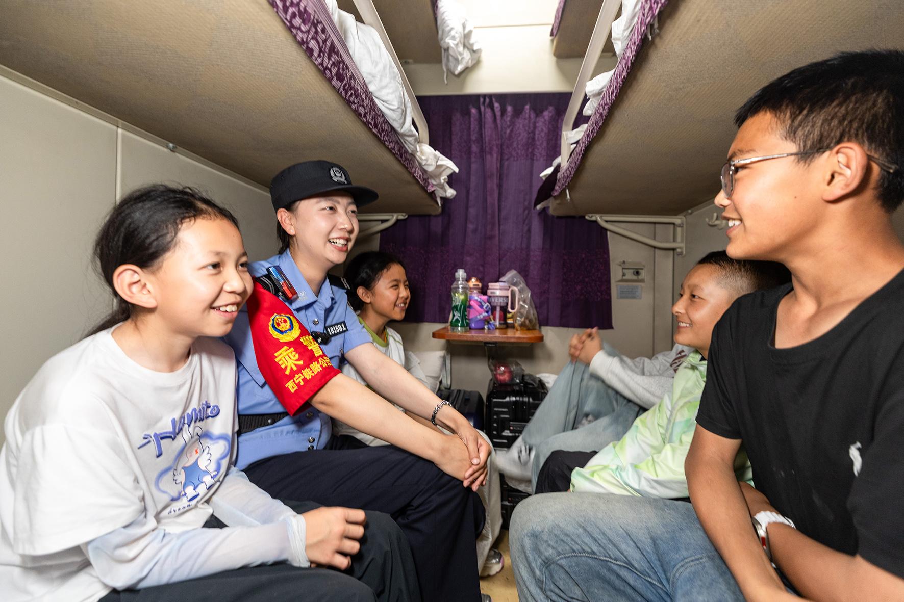 7月25日,青藏铁路公安局西宁乘警支队组织民警护送乘坐Z22次列车,来自西藏自治区的500名学生前往北京天安门看升国旗。