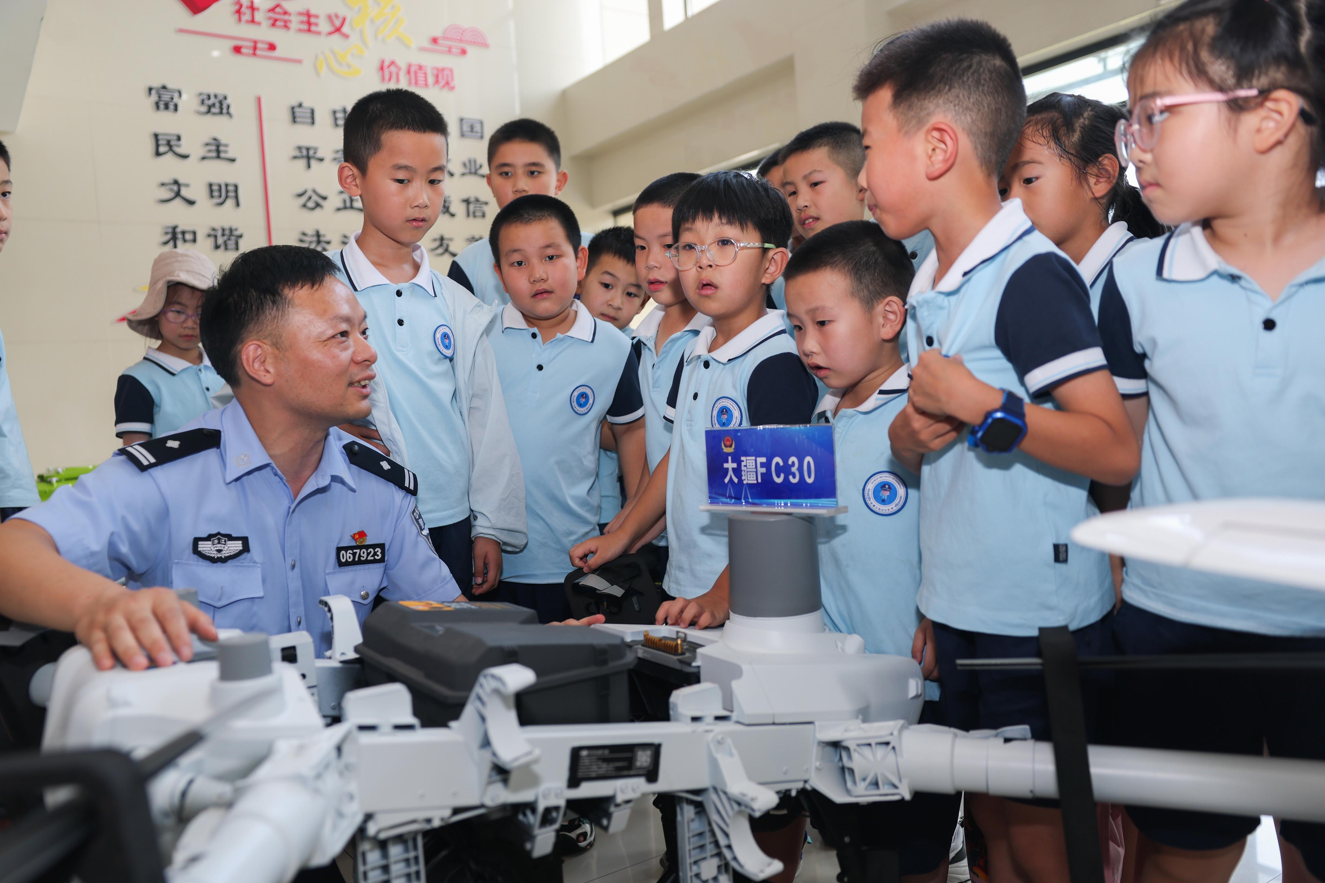 8月6日,浙江省岱山县公安局巡特警大队迎来35名辖区爱心暑托班学生,通过无人机巡控、铁骑表演、穿越机表演等环节,真切感受最美“警”色。