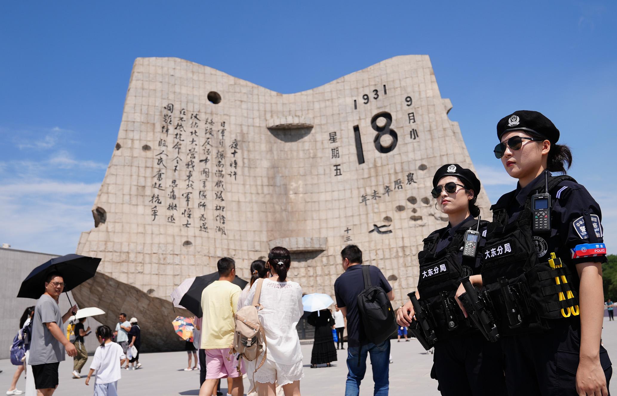 今年是中国人民抗日战争暨世界反法西斯战争胜利80周年。8月10日,辽宁沈阳“九·一八”历史博物馆迎来客流高峰。沈阳市公安局大东分局根据实际情况,科学部署警力,全力维护场馆秩序,用心用情服务游客。