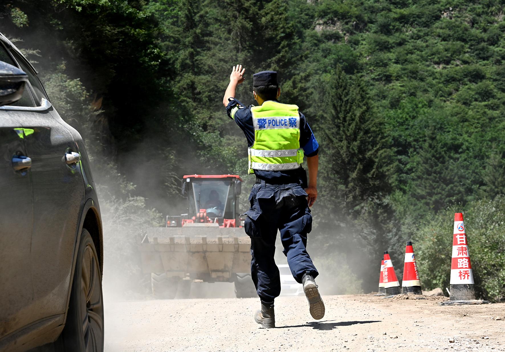 为全力保障灾区省道104线和兴黄公路安全畅通,甘肃省兰州市公安局组织警力强化源头管控,常态化开展路面隐患排查、分流引导工作,全时段、全路段开展通道保畅任务。