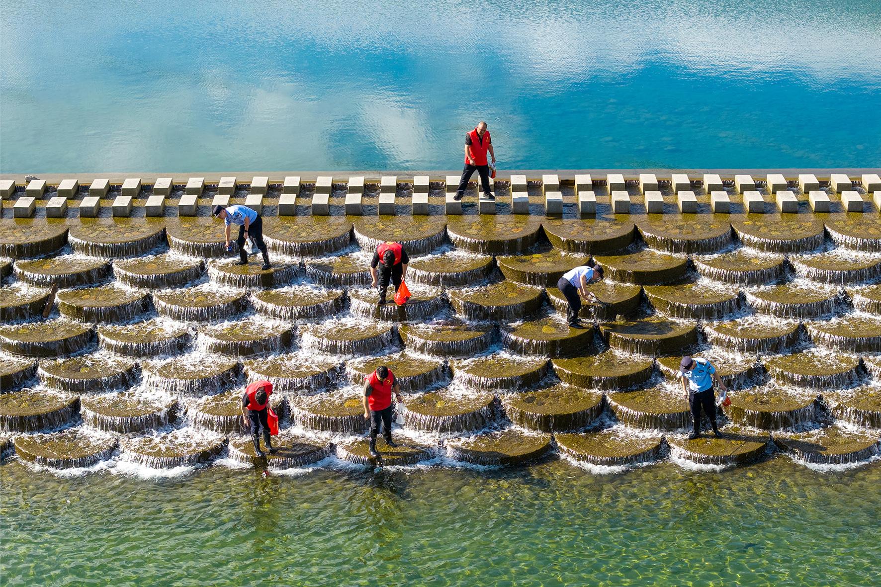 8月14日,浙江省台州市公安局黄岩分局宁溪派出所“河道警长”和宁溪镇党员志愿者一起在辖区巡河护水,清理杂物垃圾,维护“河畅、水清、景美”的生态环境。