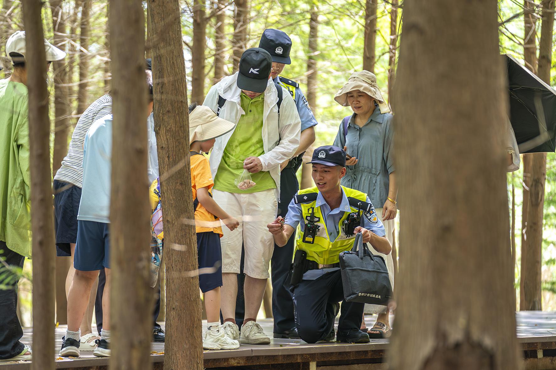 上海市公安局崇明分局三星派出所根据西沙湿地公园暑假旺季客流情况,创新探索“警景共建”模式,联合公园开展生态巡查、安全提示和服务群众等工作。