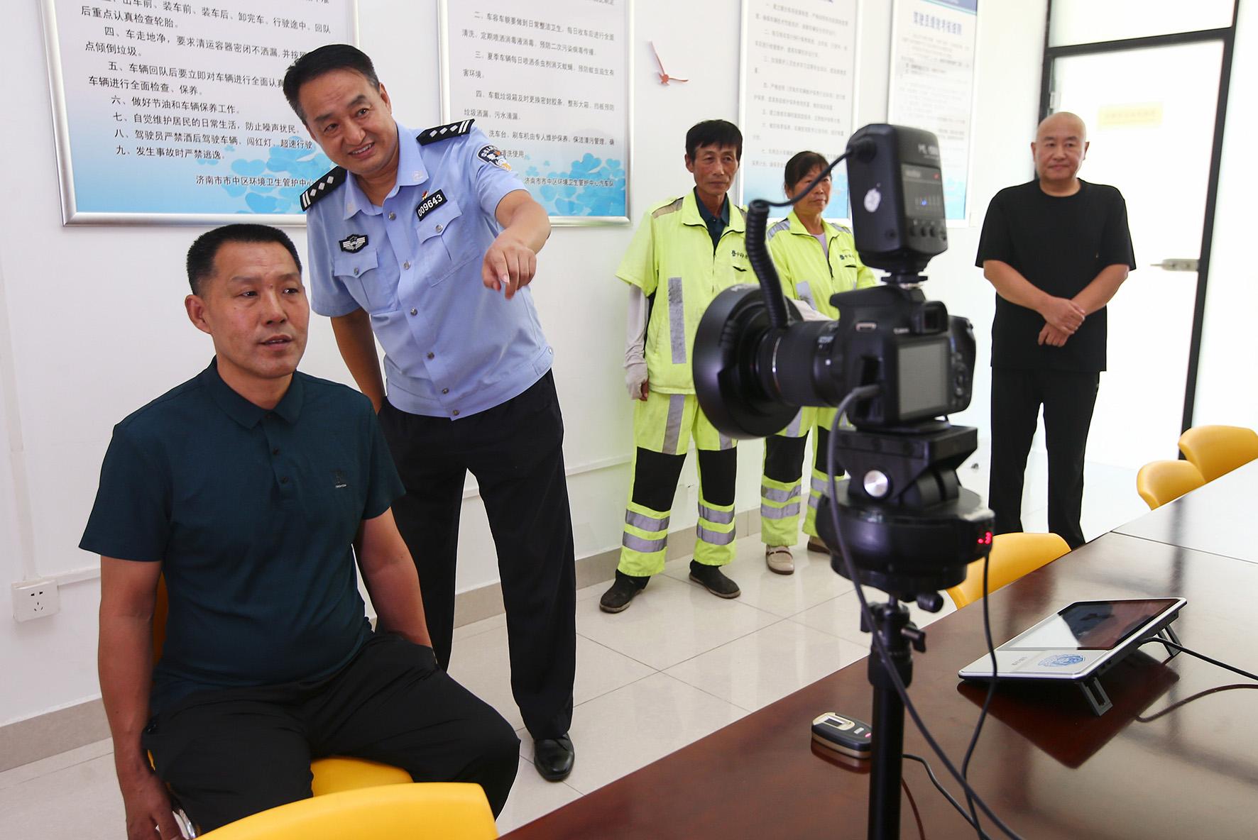 8月19日,山东省济南市公安局市中分局基础管控大队、七贤派出所组织民警来到济南中环清洁公司,上门给环卫工人集中办理身份证。