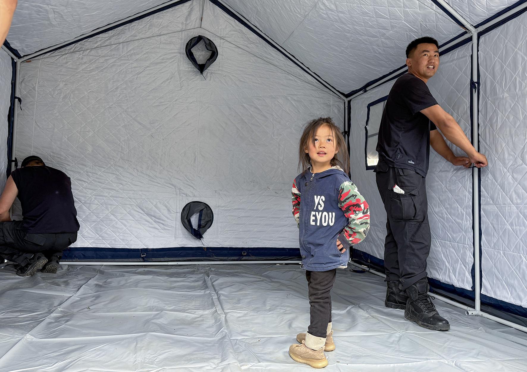 8月14日,苏明凯和张云峰在帐篷里和瑶瑶拍合影。金万贵 摄