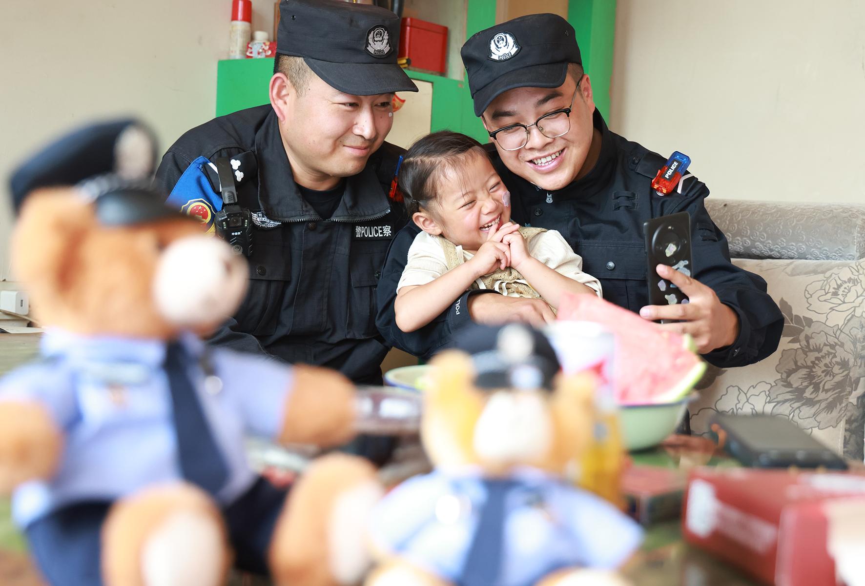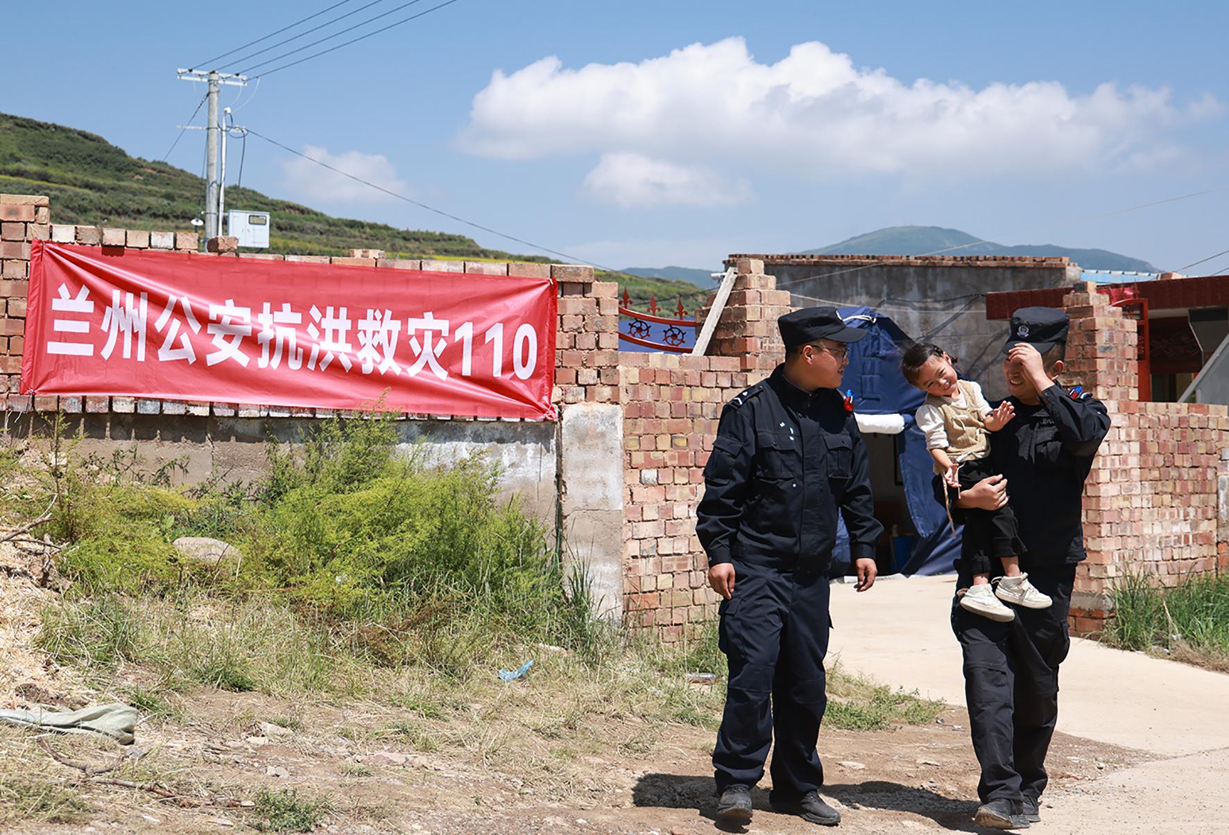 “叔叔来啦!”8月14日,在甘肃榆中县新营镇八门寺小泥窝村的公安指挥部帐篷里,一声清脆稚嫩的呼喊打破了忙碌的氛围,小女孩瑶瑶像一只欢快的小鸟,一头扑进兰州市公安局新区分局辅警苏明凯、张云峰的怀里……