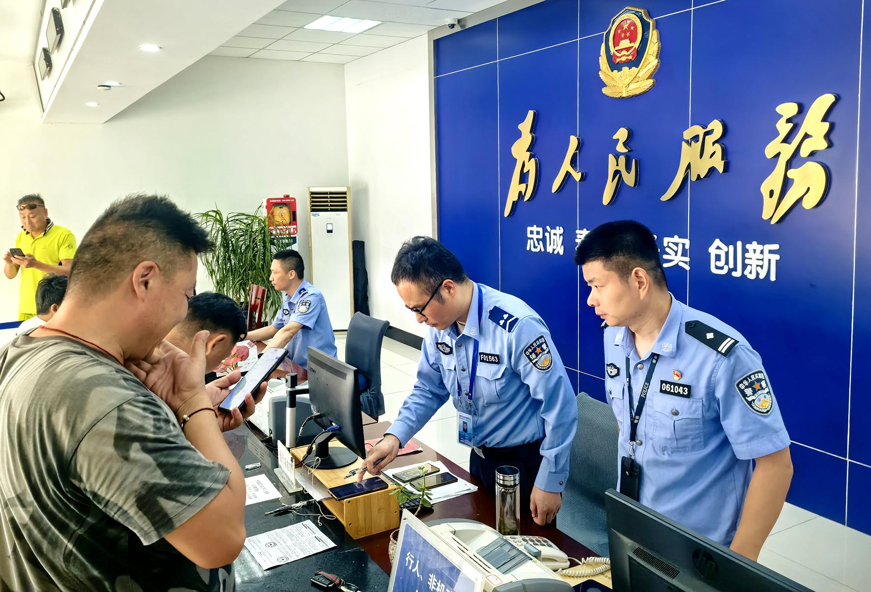 9月8日,江苏省南通市公安局交通管理支队四大队民辅警在服务大厅为办事群众耐心细致服务。南通市公安局交通管理支队四大队主动厘清办事项目和办事程序,推进“网上办、掌上办”,实行一次性告知,避免群众二次跑腿。